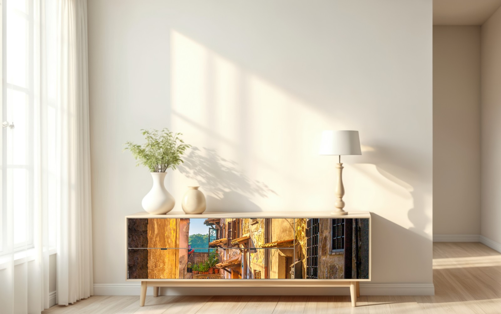 Repositionierbarer Aufkleber Sonnenbeschienene gasse in der Toskana