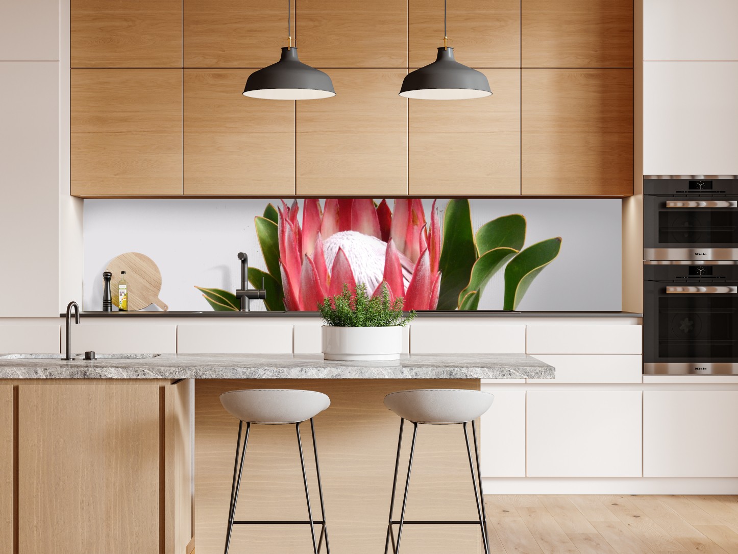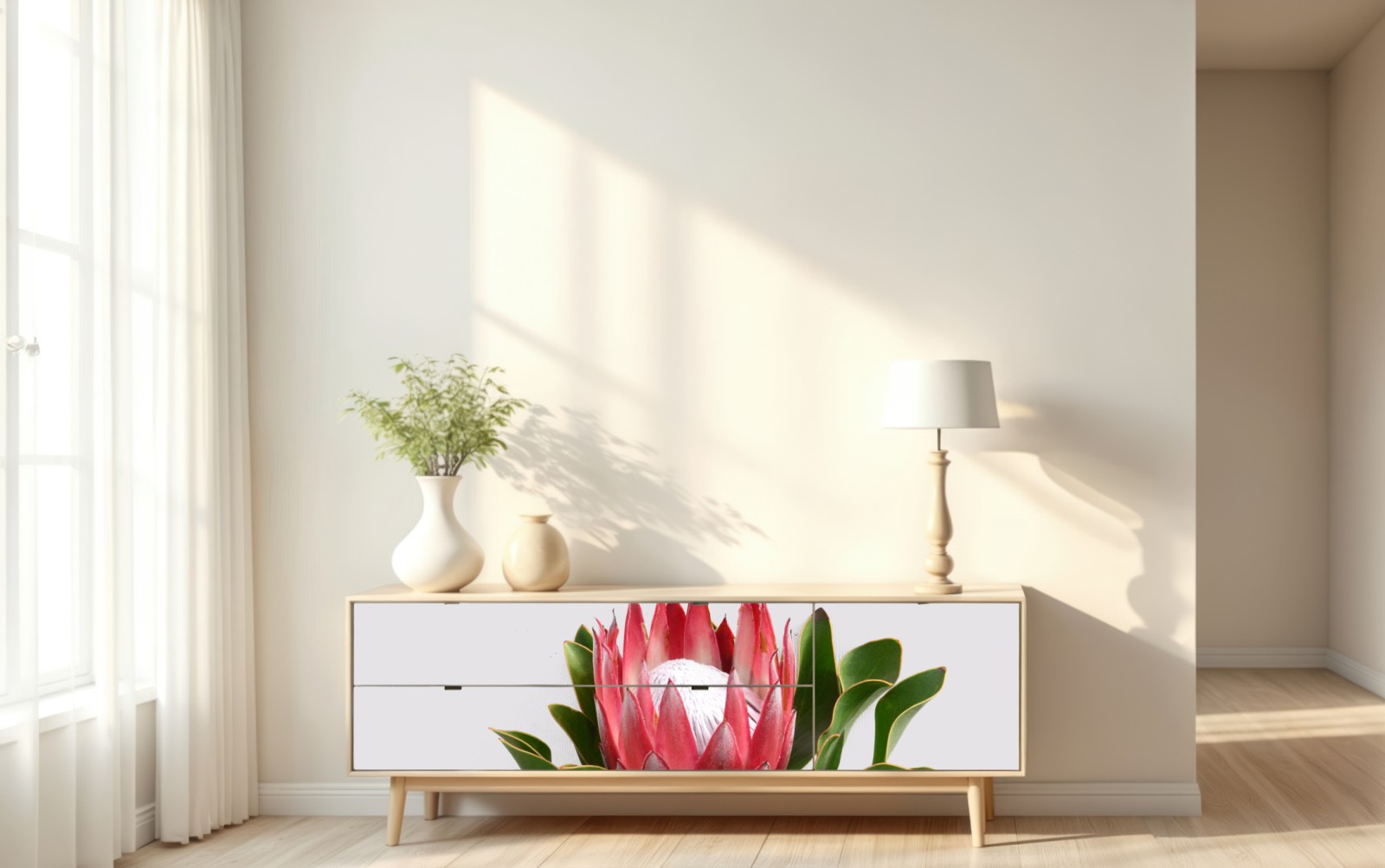 Repositionierbarer Aufkleber Rosa protea auf neutralem hintergrund