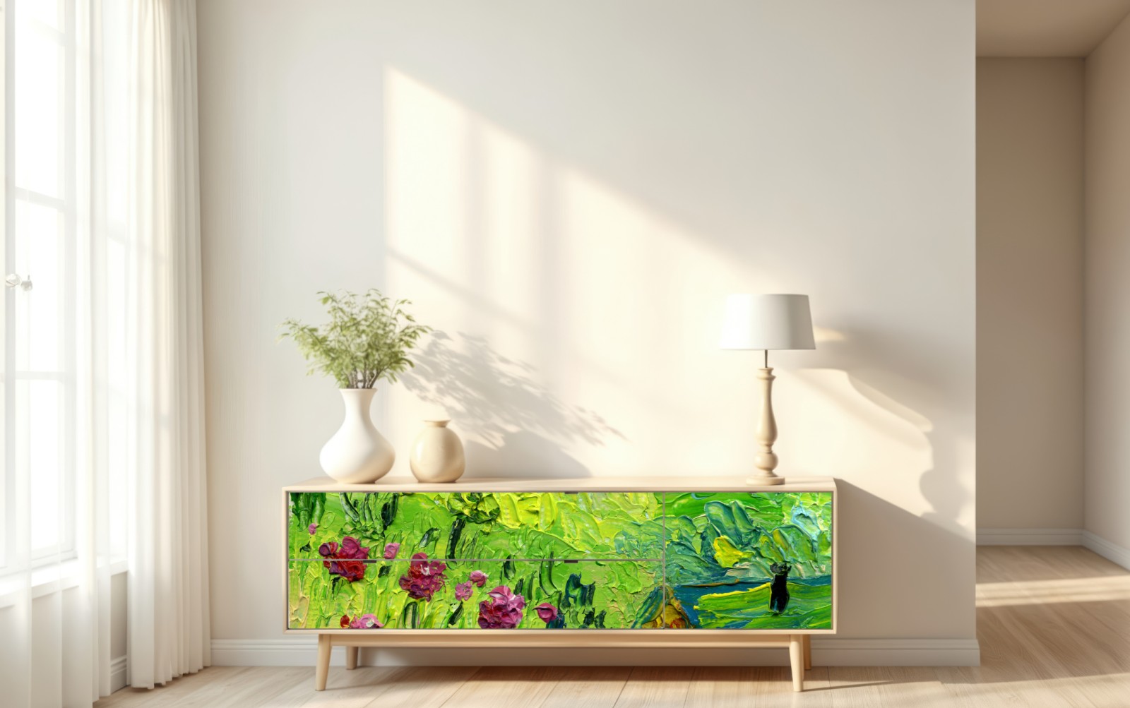 Repositionierbarer Aufkleber Pfingstrosenwiese im frühling — impasto blumenbild