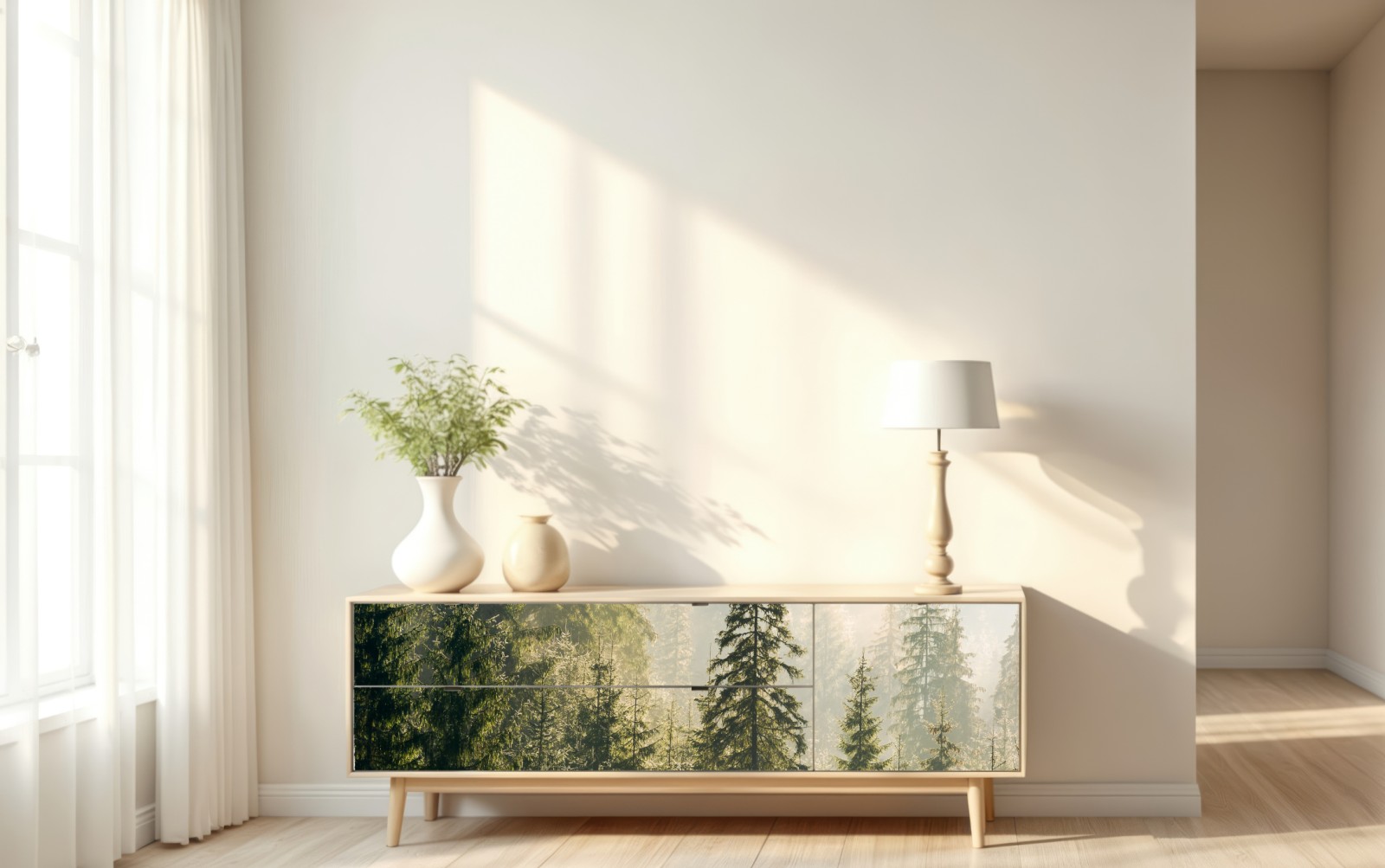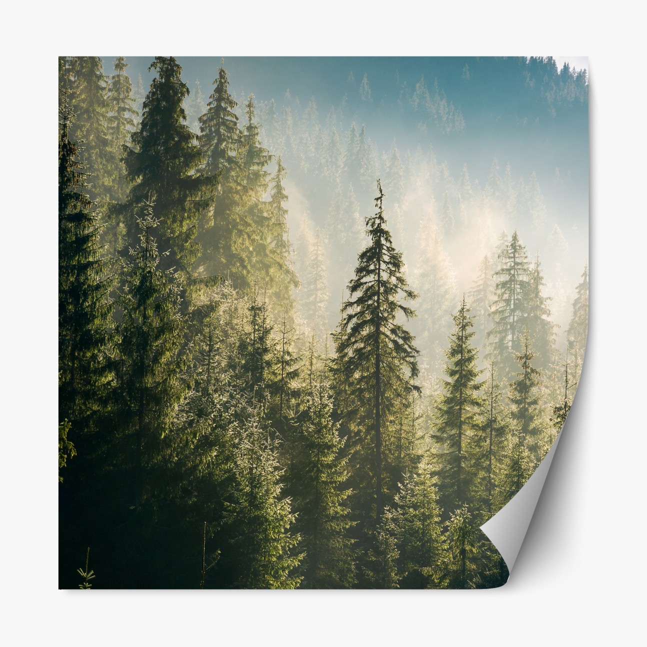 Repositionierbarer Aufkleber Nebliger fichtenwald im morgenlicht