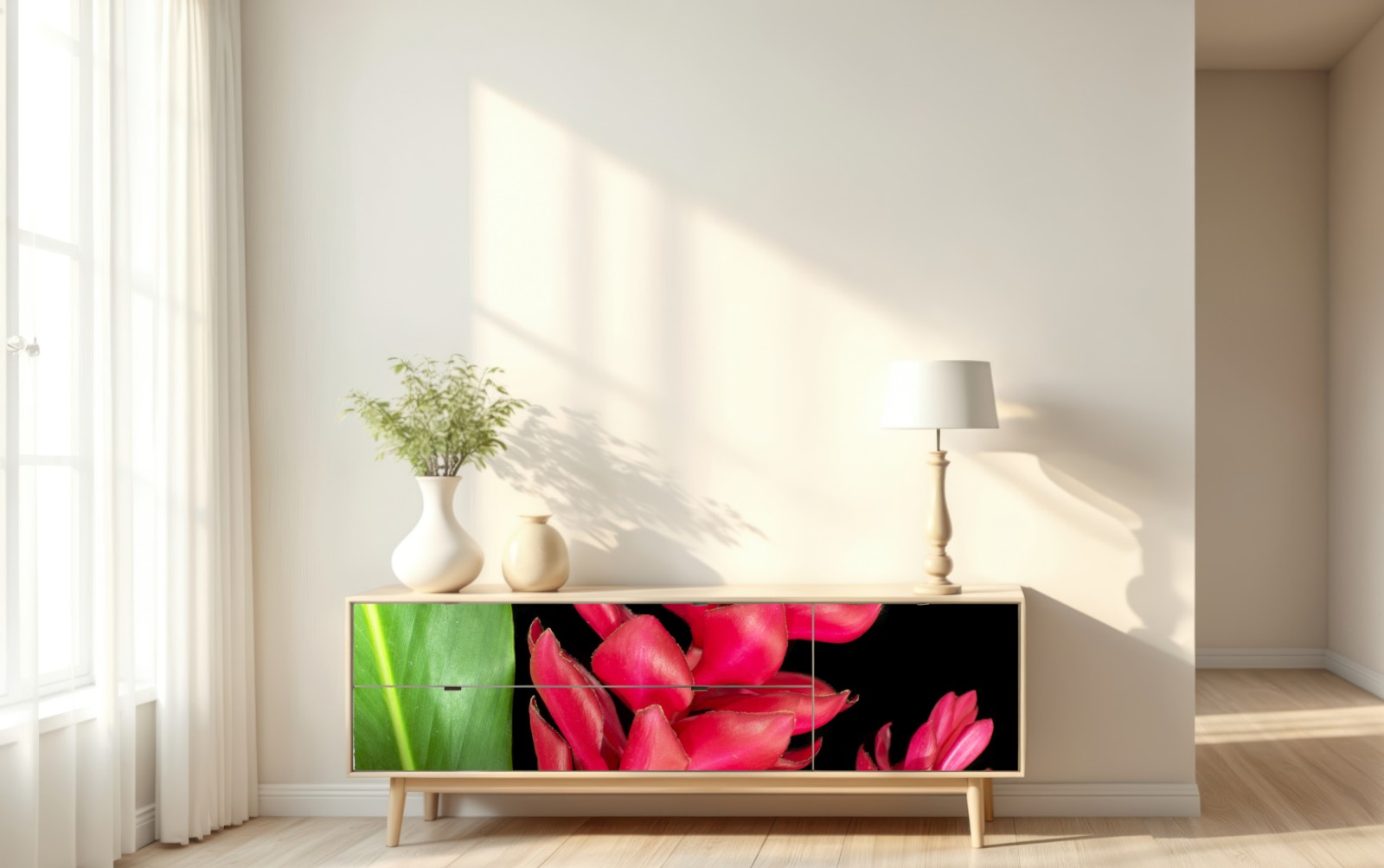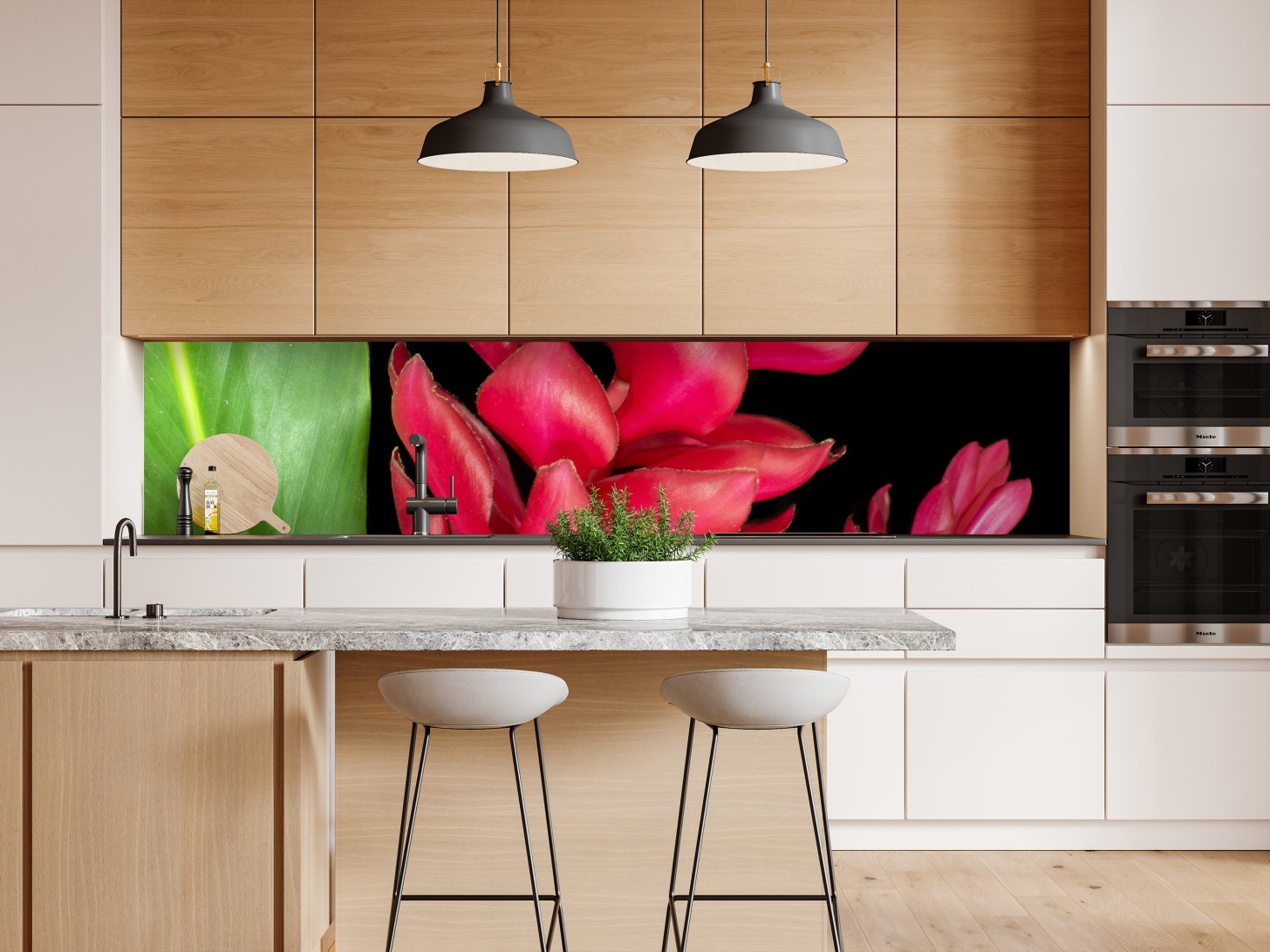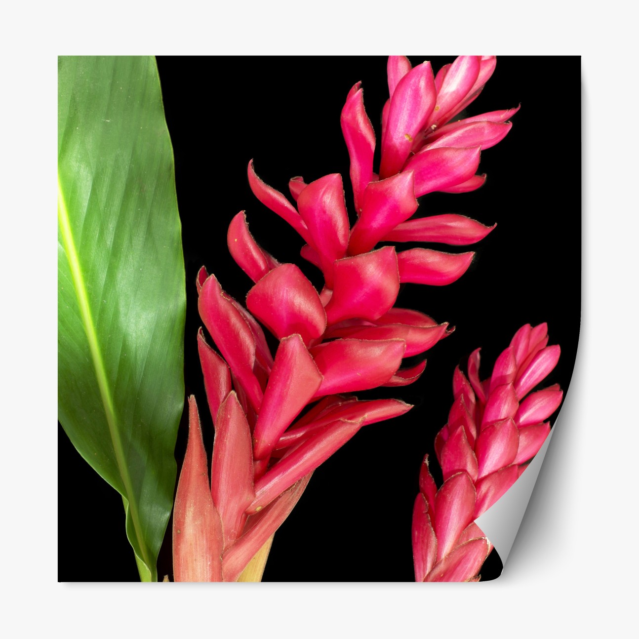Repositionierbarer Aufkleber Leuchtende zier-ingwer-blüte auf schwarzem hintergrund