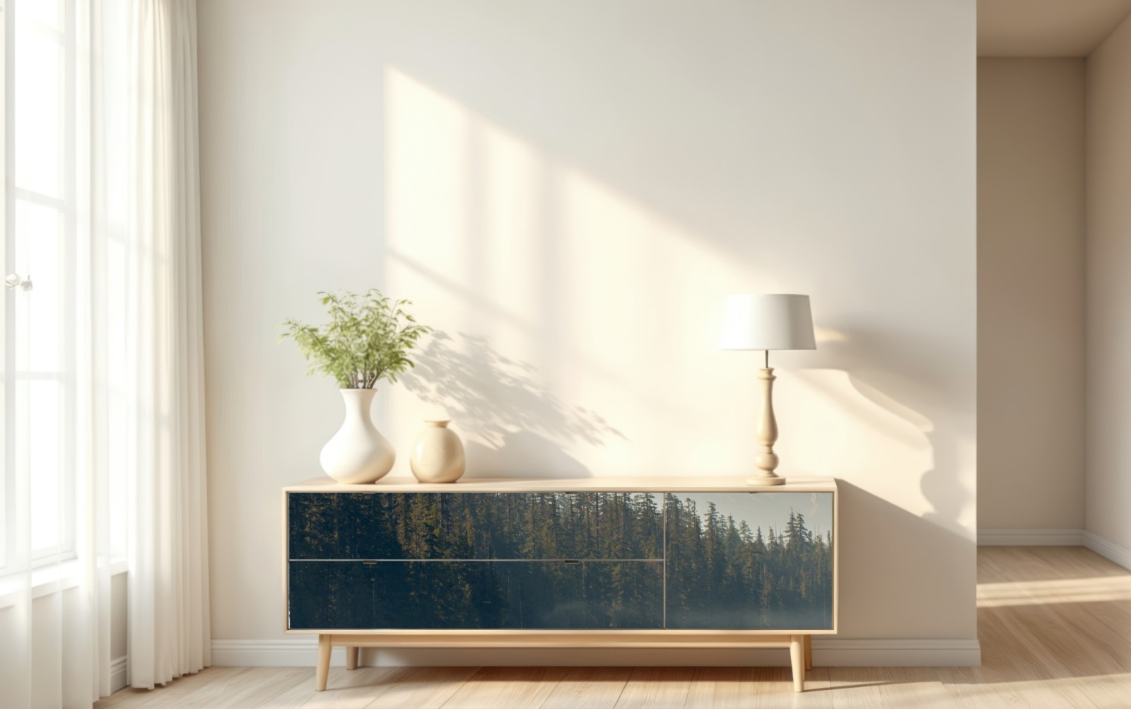 Repositionierbarer Aufkleber Schneebedeckter berg über ruhigem see