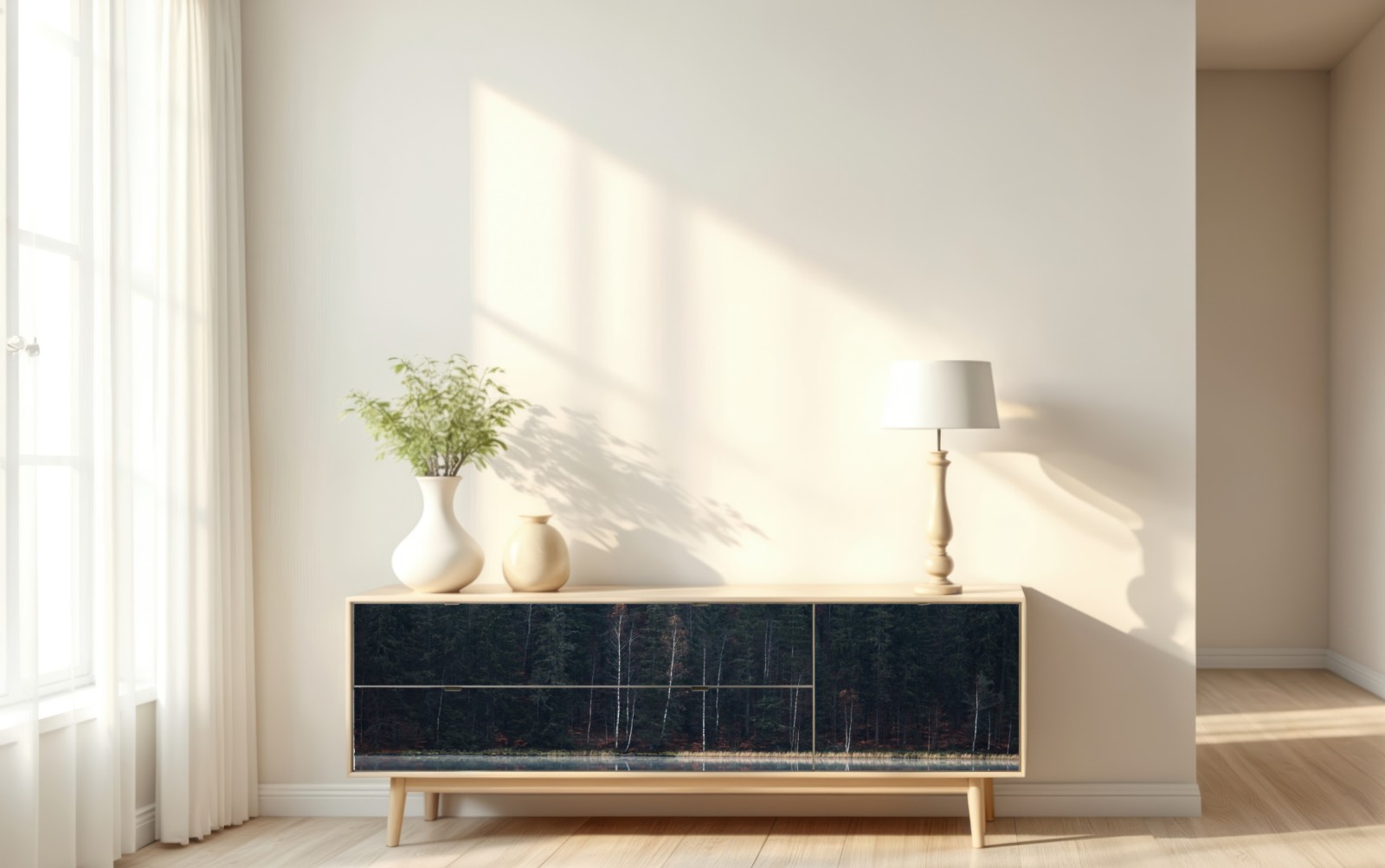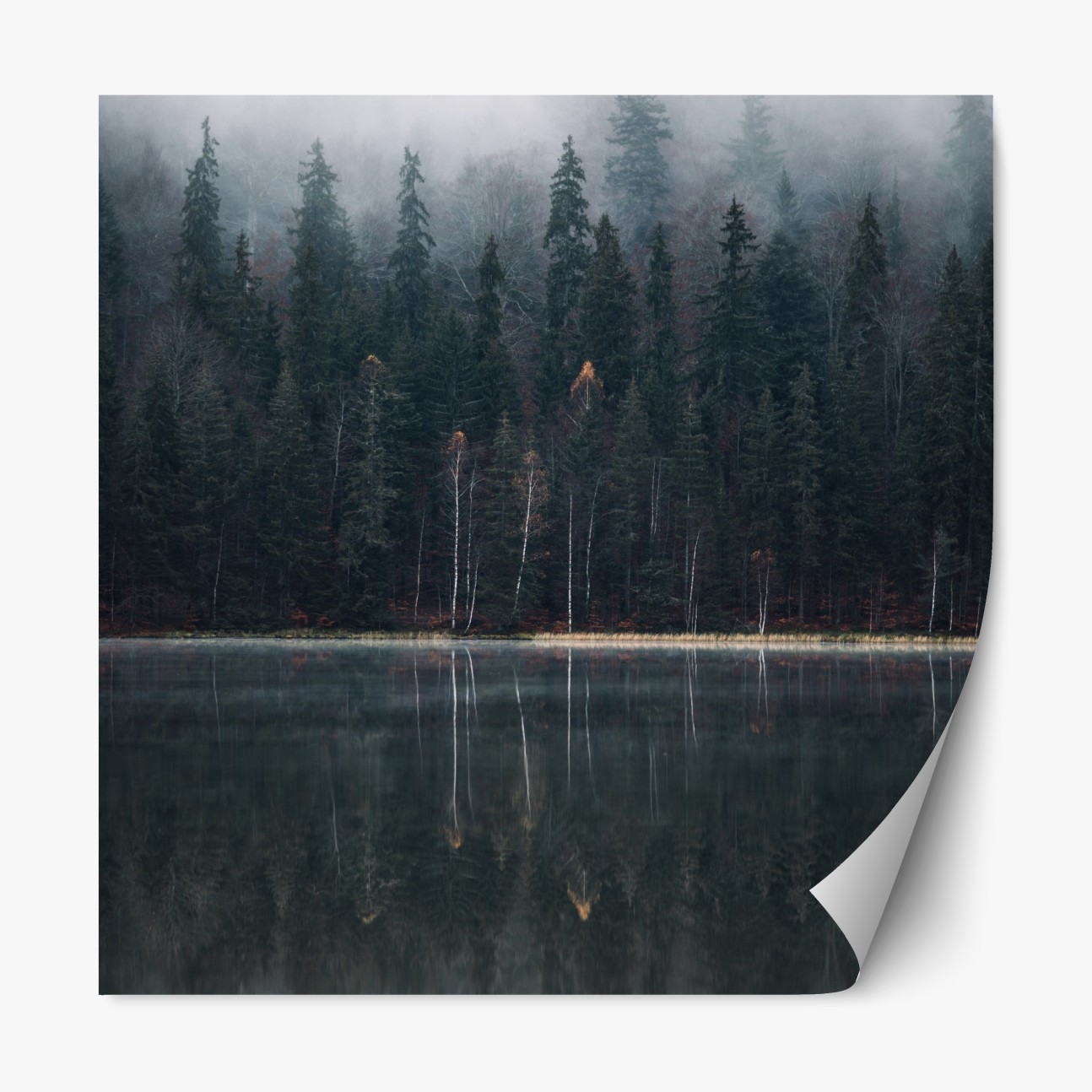 Repositionierbarer Aufkleber Neblige waldreflexion