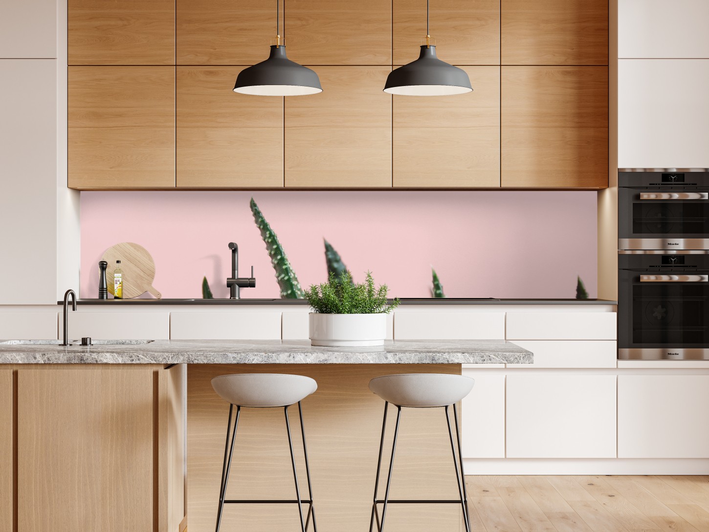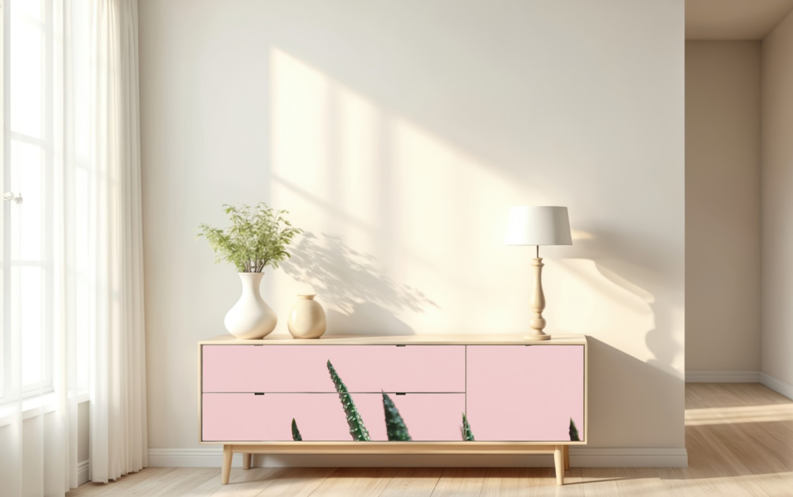 Repositionierbarer Aufkleber Grüner aloes auf rosa hintergrund