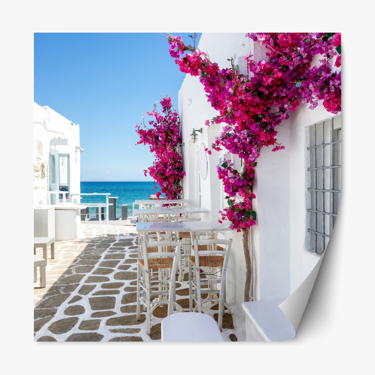Repositionierbarer Aufkleber Sonnige mediterrane gasse mit bougainvillea