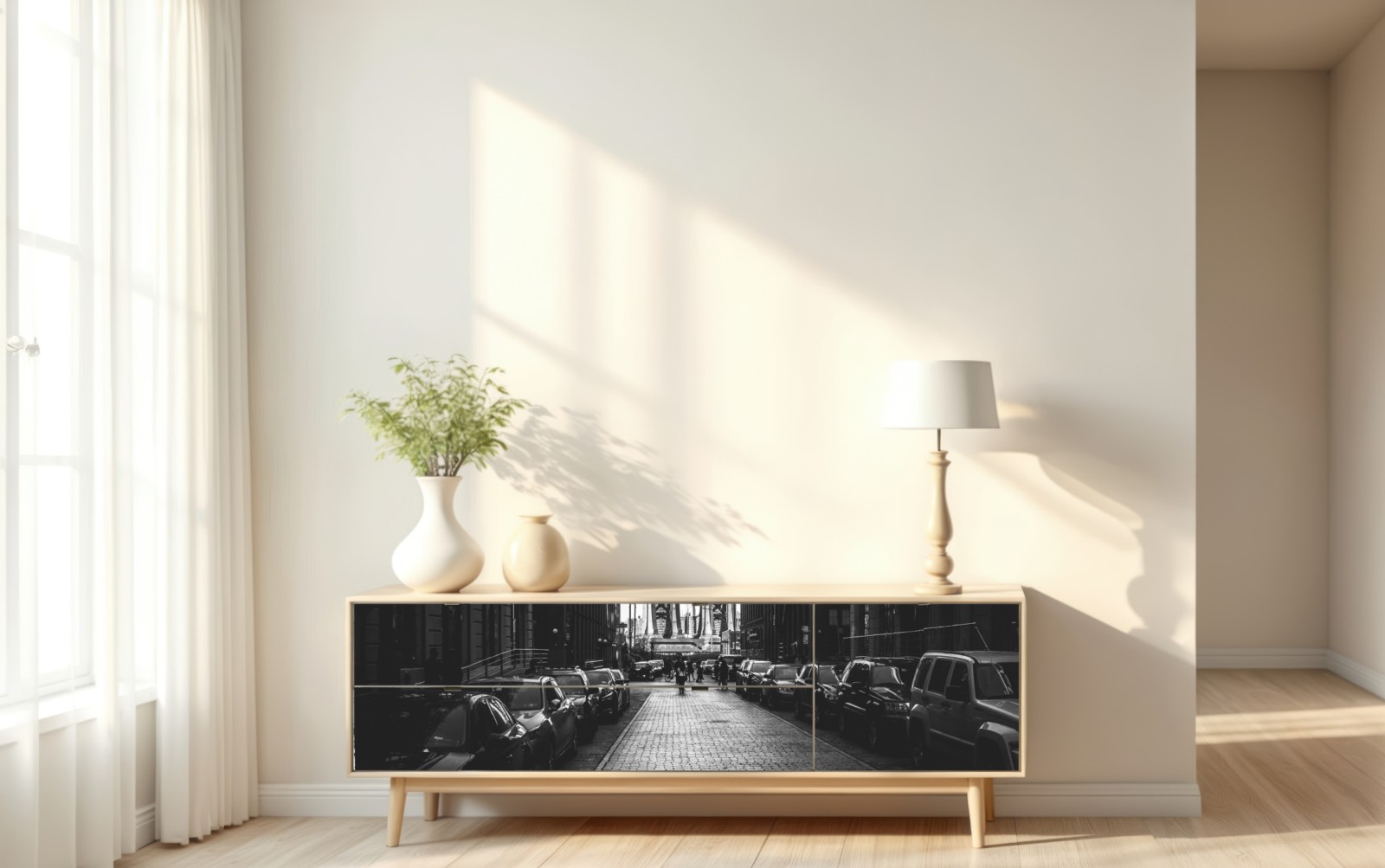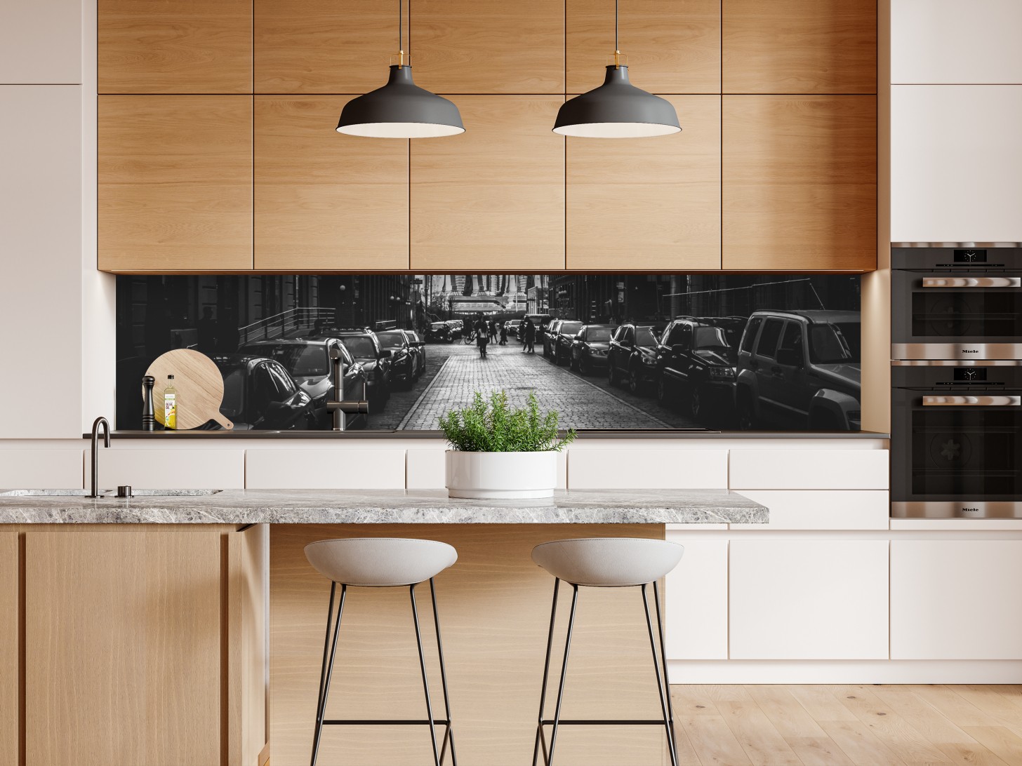 Repositionierbarer Aufkleber Manhattan Bridge im rahmen einer gepflasterten straße