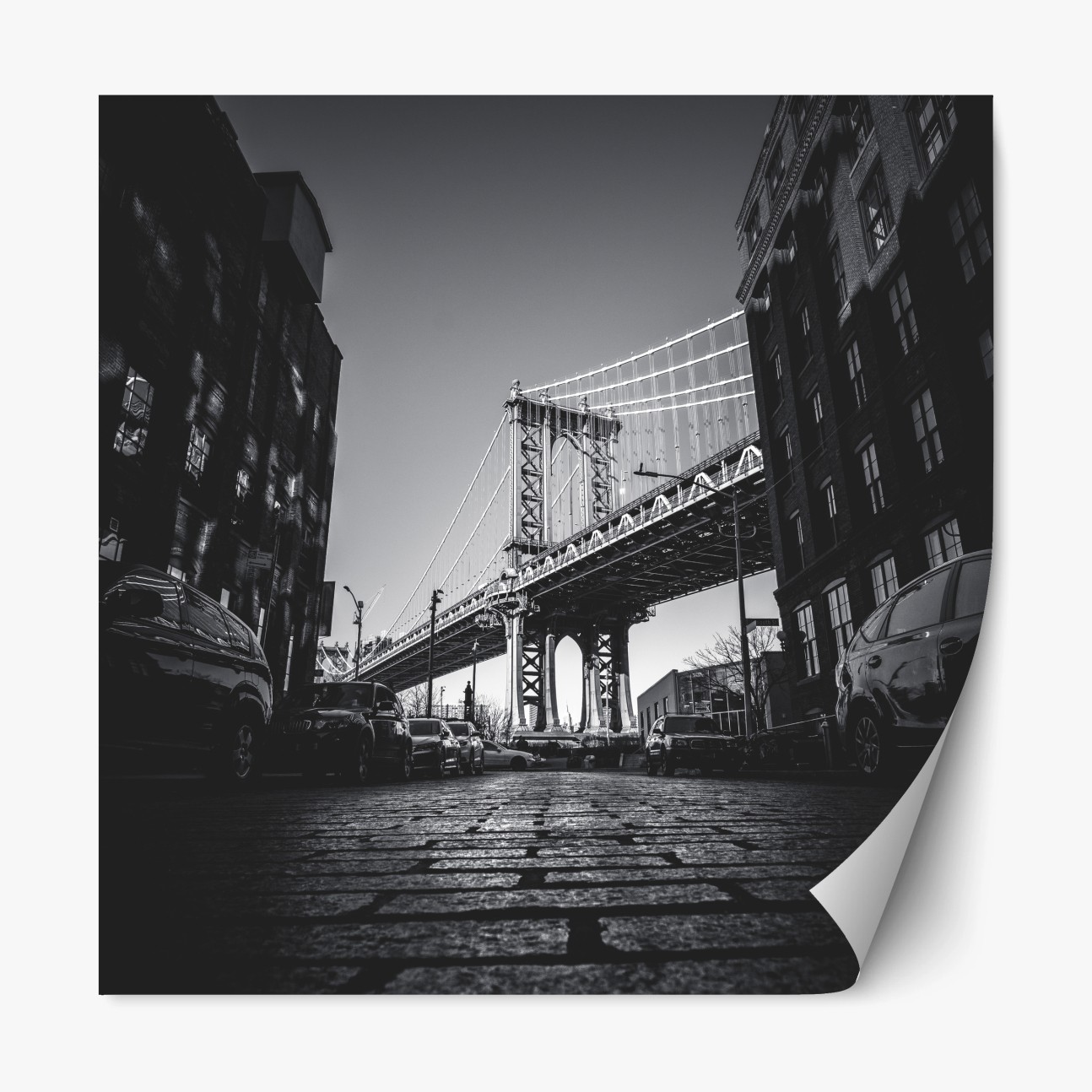 Repositionierbarer Aufkleber Manhattan brücke perspektive über kopfsteinpflaster