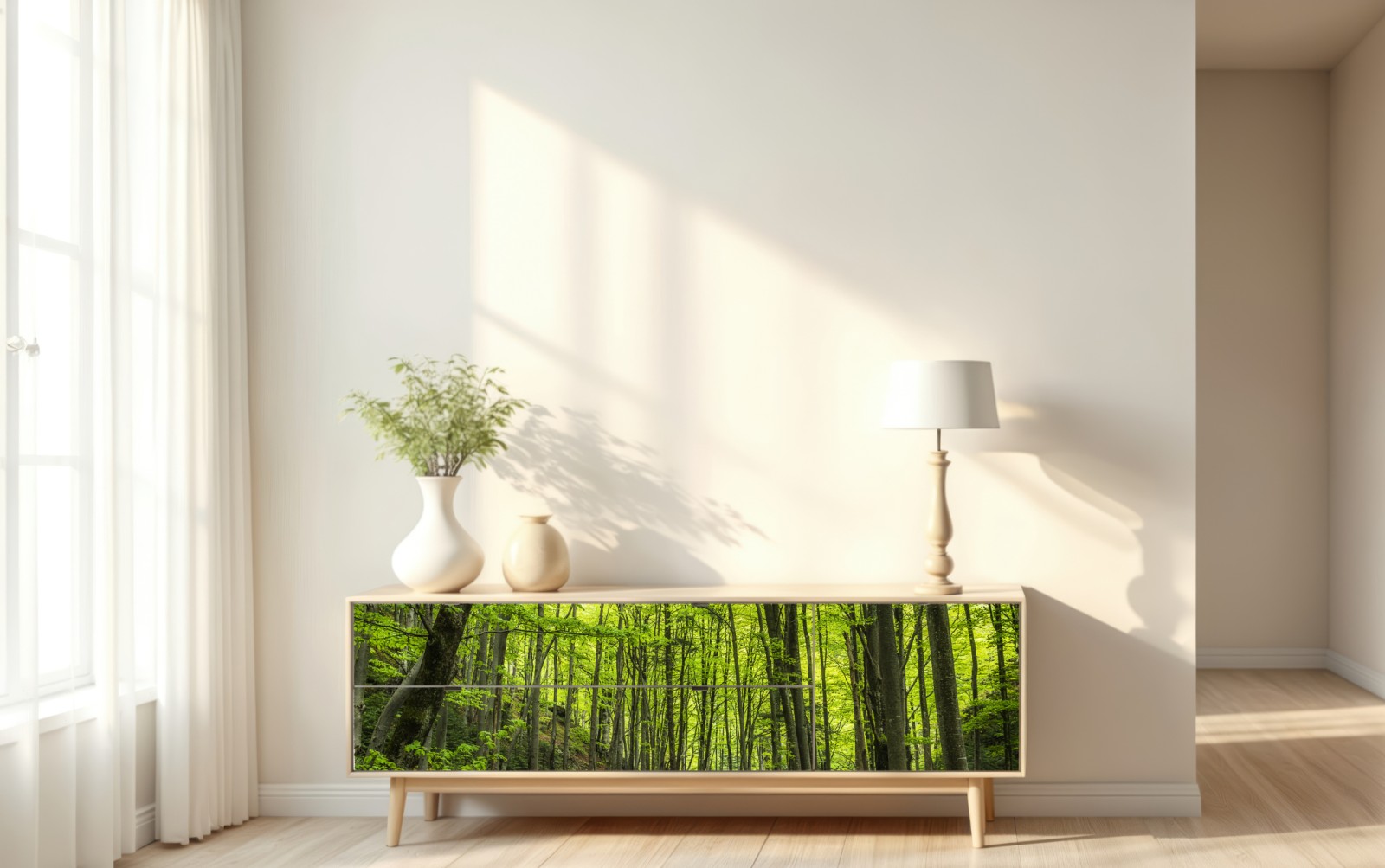 Repositionierbarer Aufkleber Ruhiger grüner waldbach