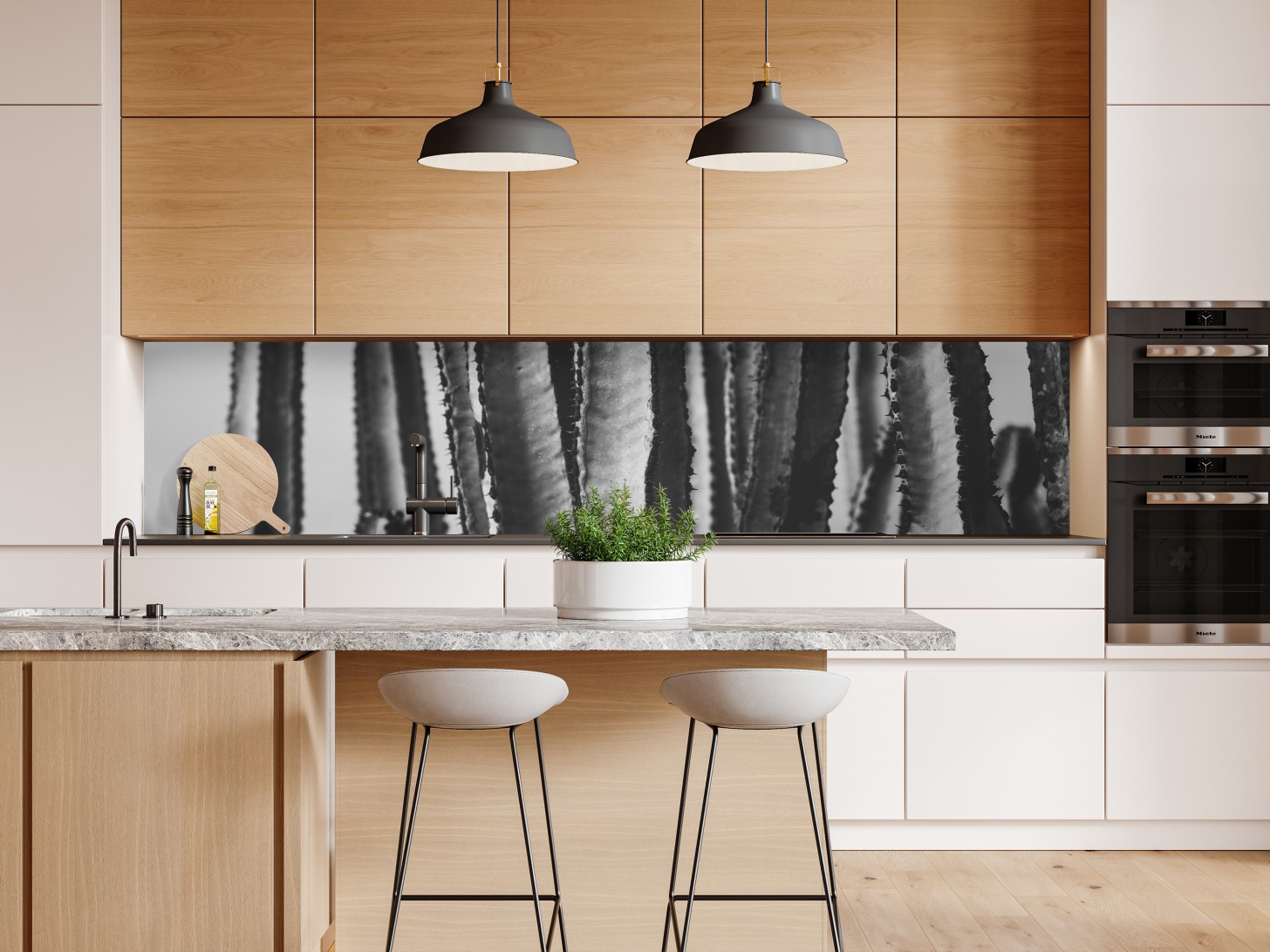 Repositionierbarer Aufkleber Schwarzweiß kaktus nahaufnahme