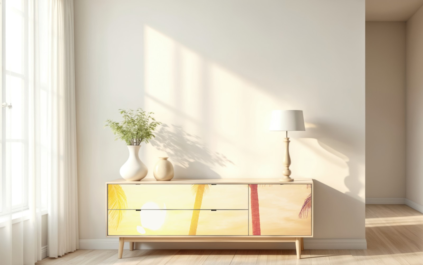 Repositionierbarer Aufkleber Tropischer sonnenuntergang mit surfboards