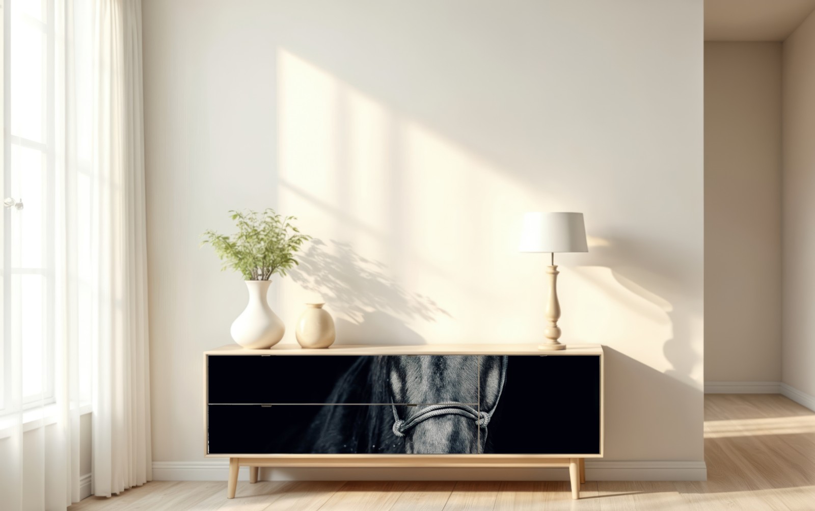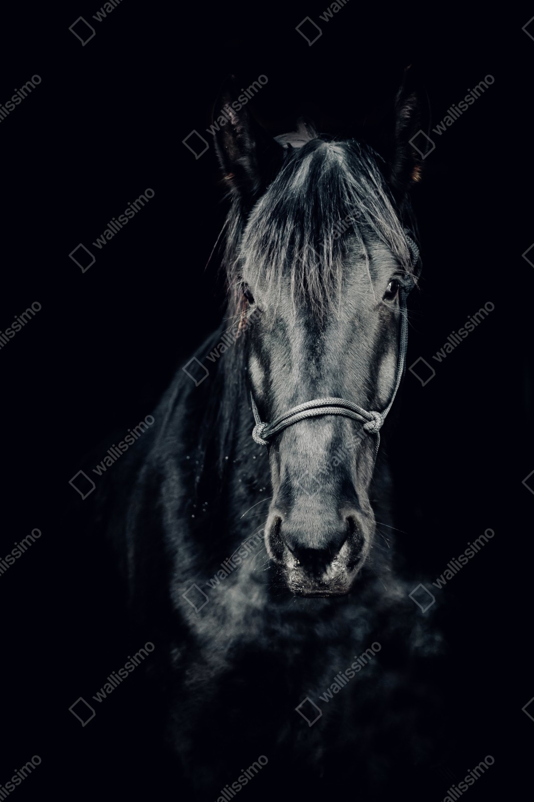 Repositionierbarer Aufkleber Majestätisches schwarzes pferdeporträt