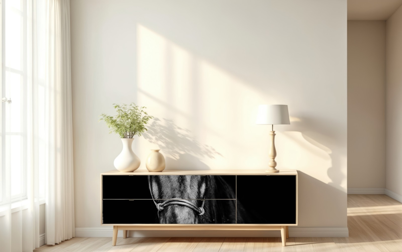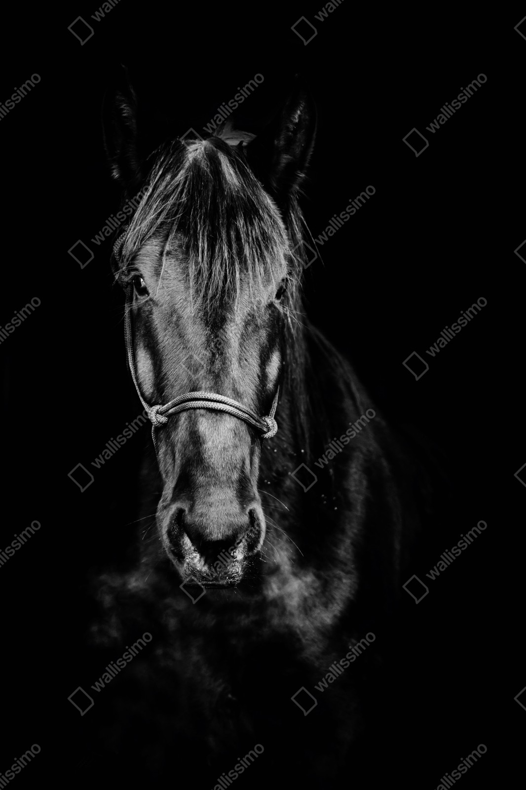 Repositionierbarer Aufkleber Dramatisches pferdeporträt in monochrom