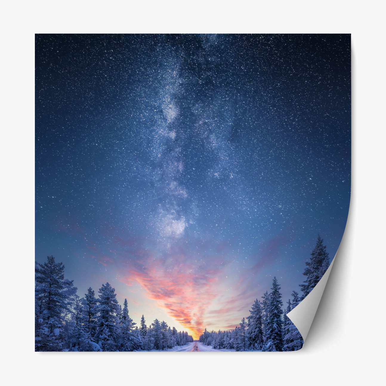 Repositionierbarer Aufkleber Straße zur milchstraße bei sonnenaufgang