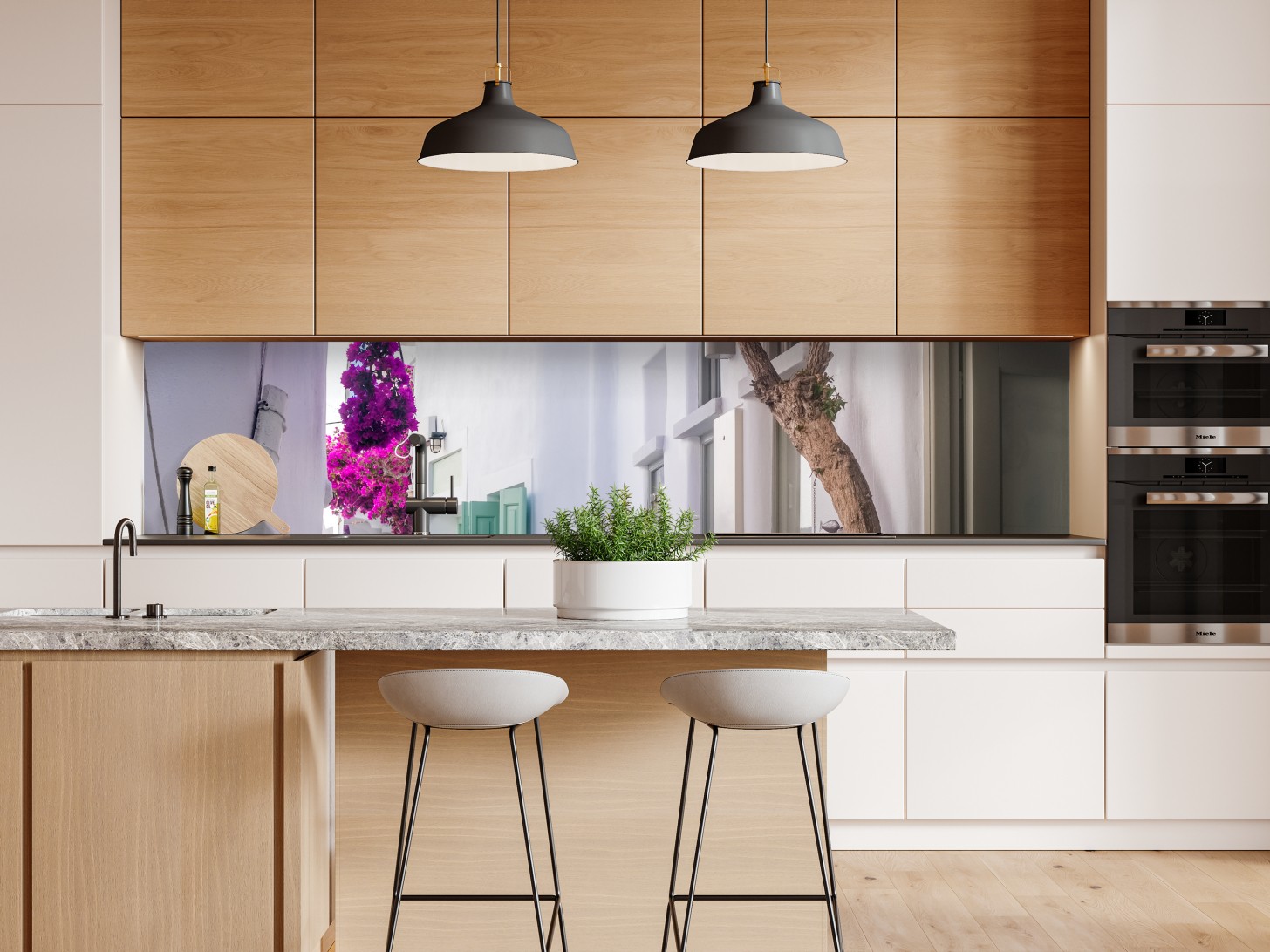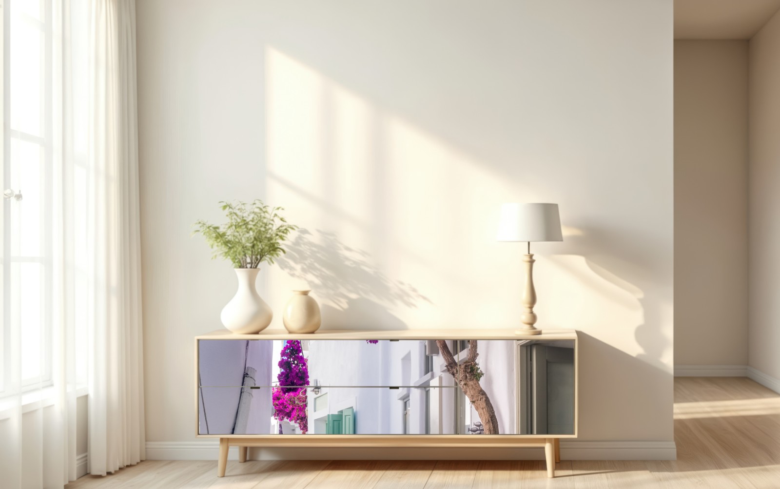 Repositionierbarer Aufkleber Sonnige mediterrane gasse mit bougainvillea