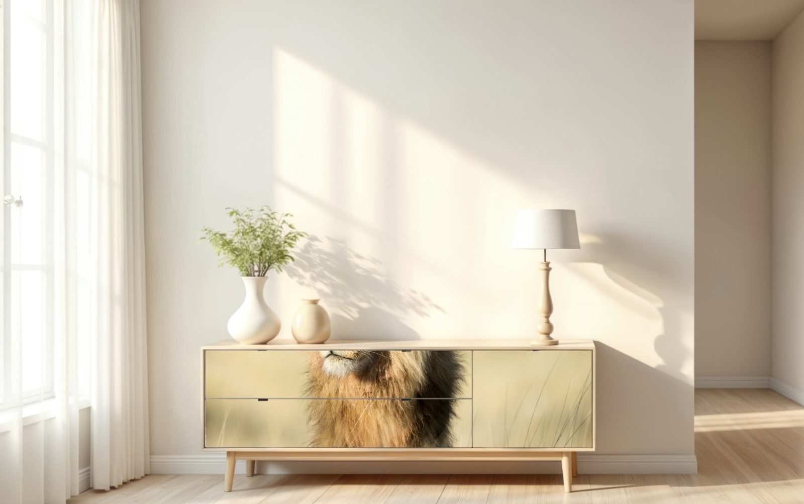 Repositionierbarer Aufkleber Majestätischer löwe in der steppe