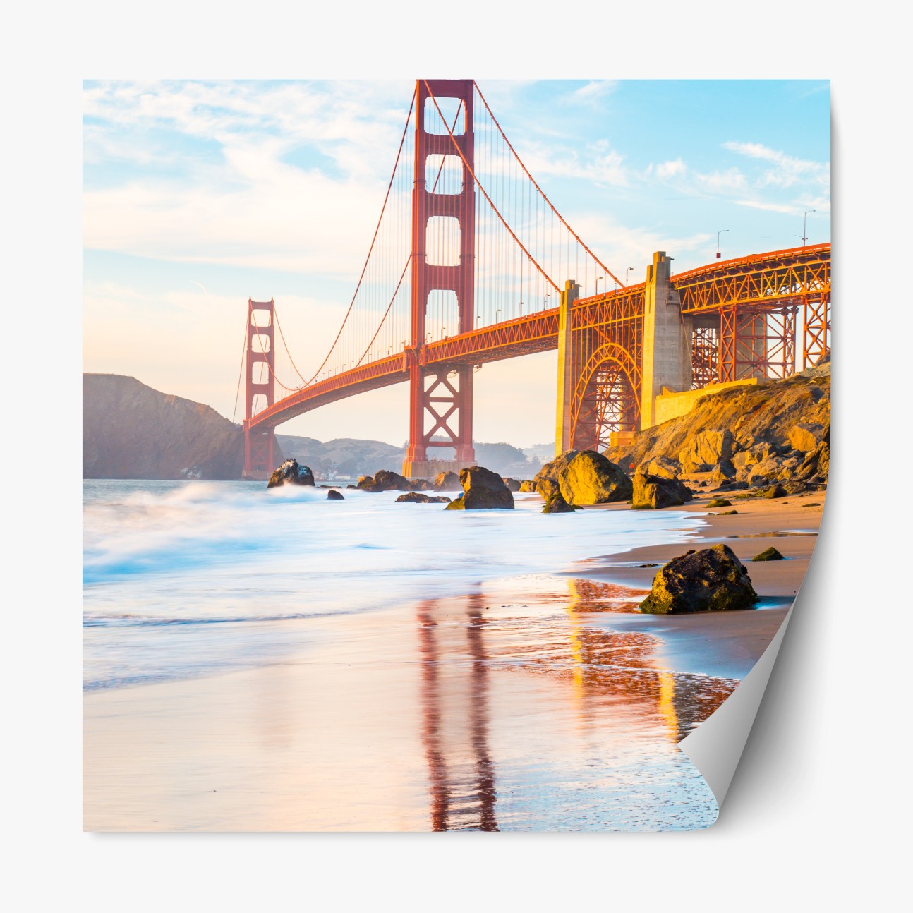 Repositionierbarer Aufkleber Goldene stunde an der Golden Gate Bridge, Baker Beach