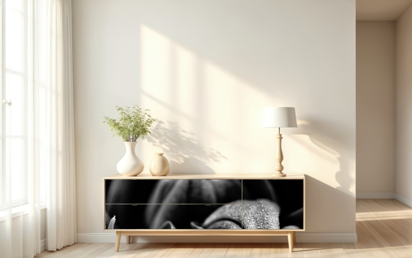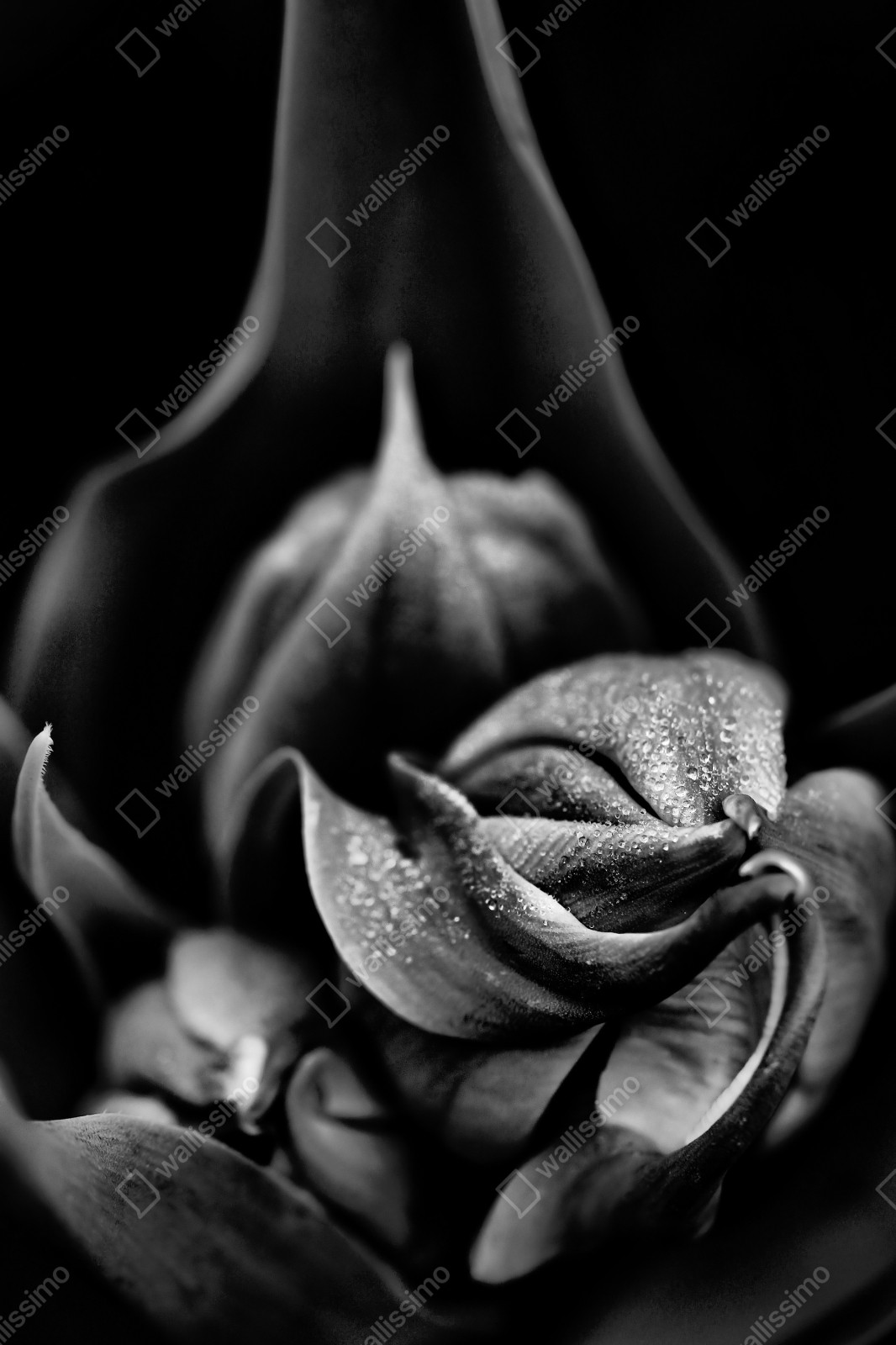 Repositionierbarer Aufkleber Monochrome nahaufnahme blüte mit tau