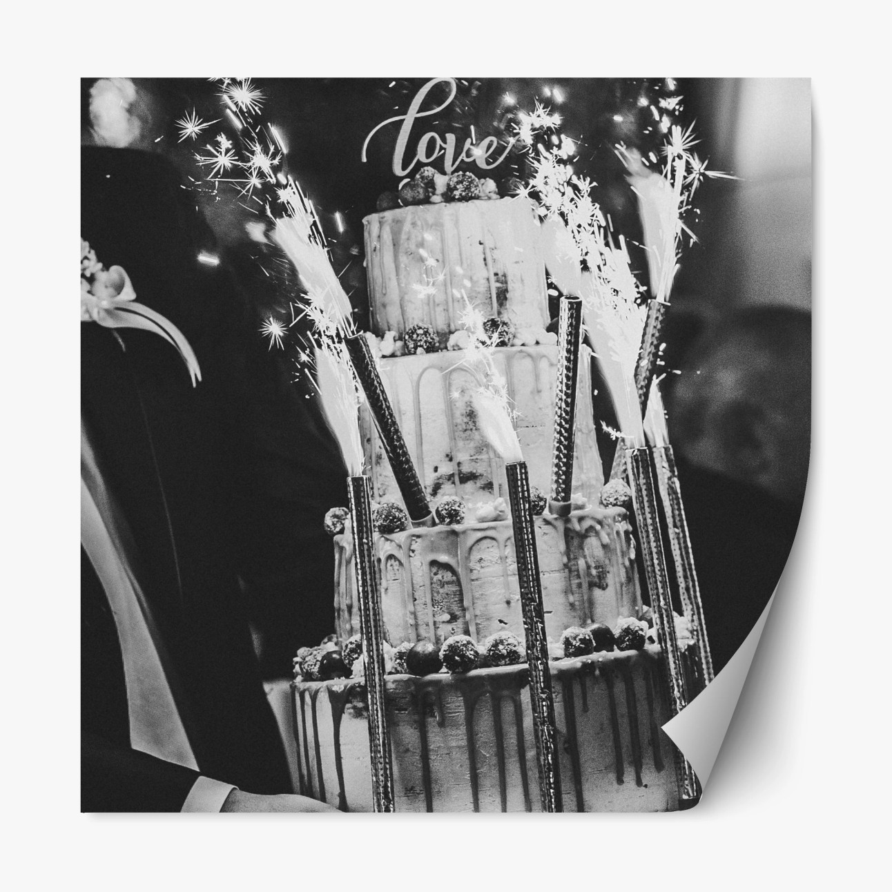 Repositionierbarer Aufkleber Rustikale hochzeitstorte mit wunderkerzen