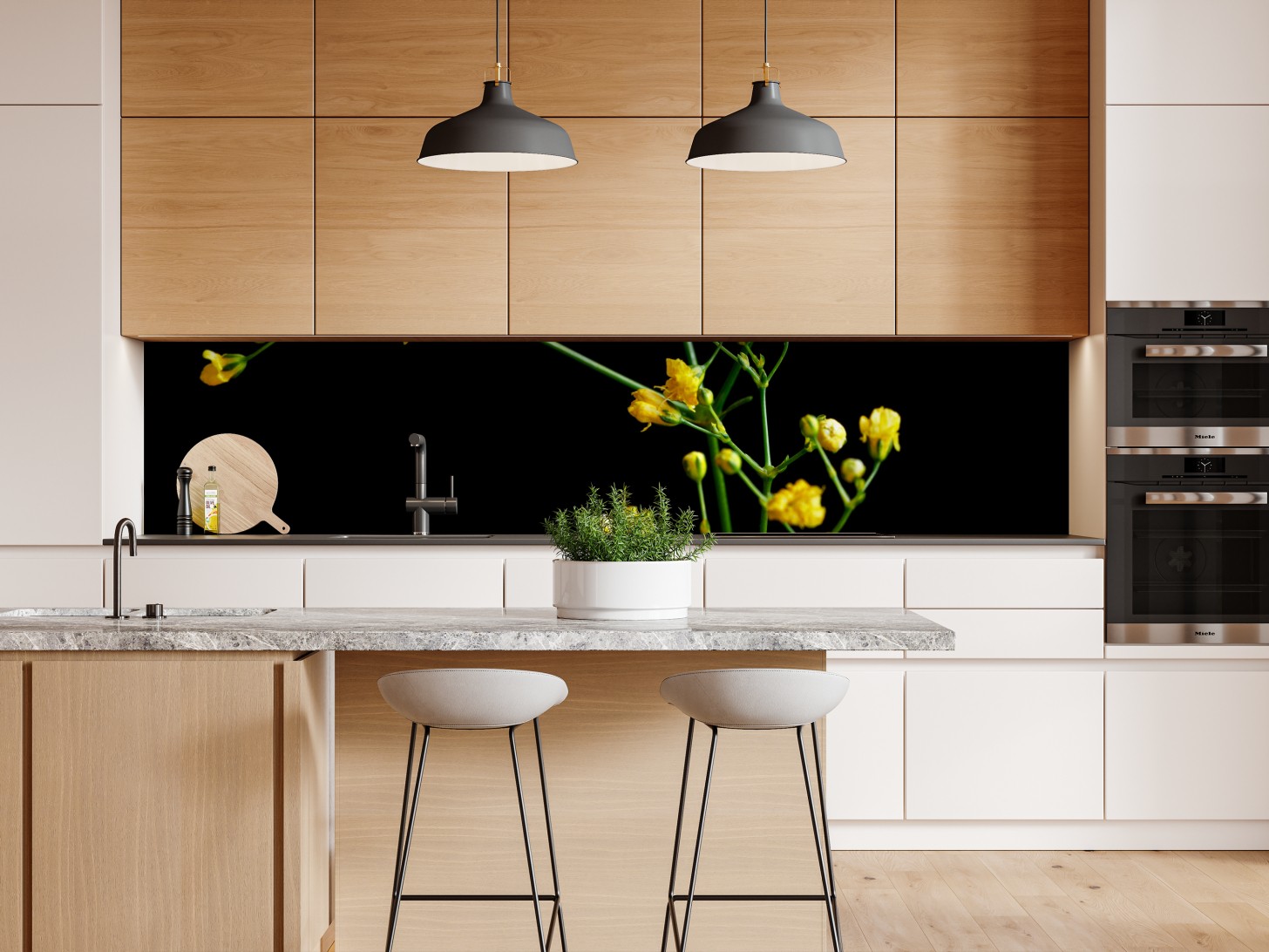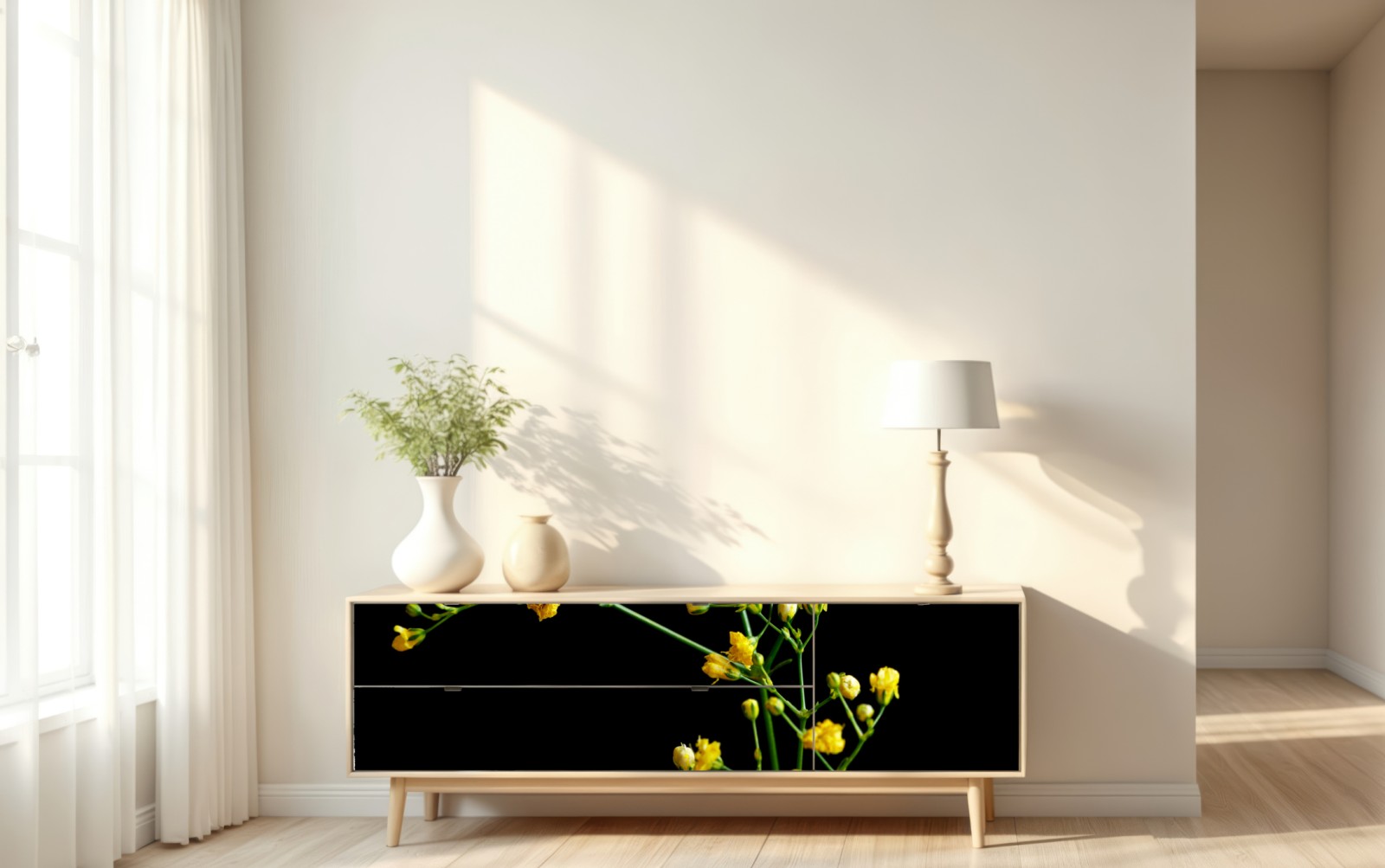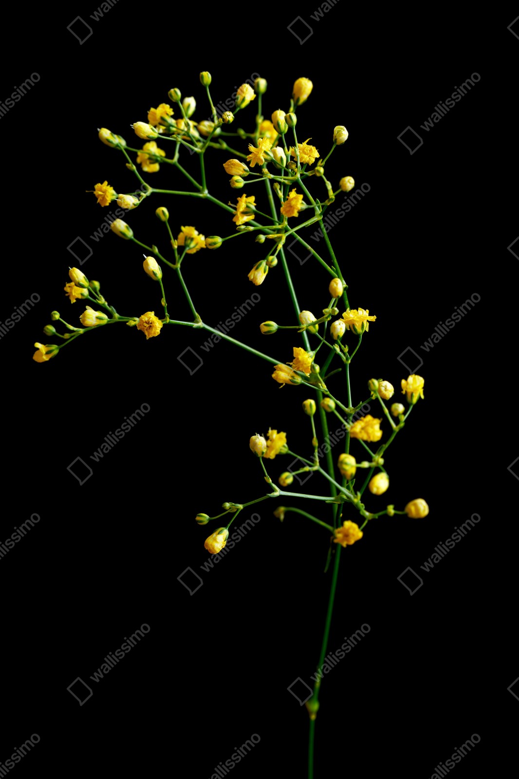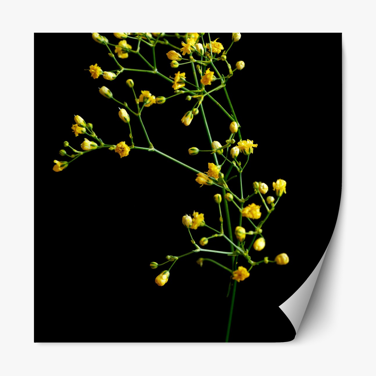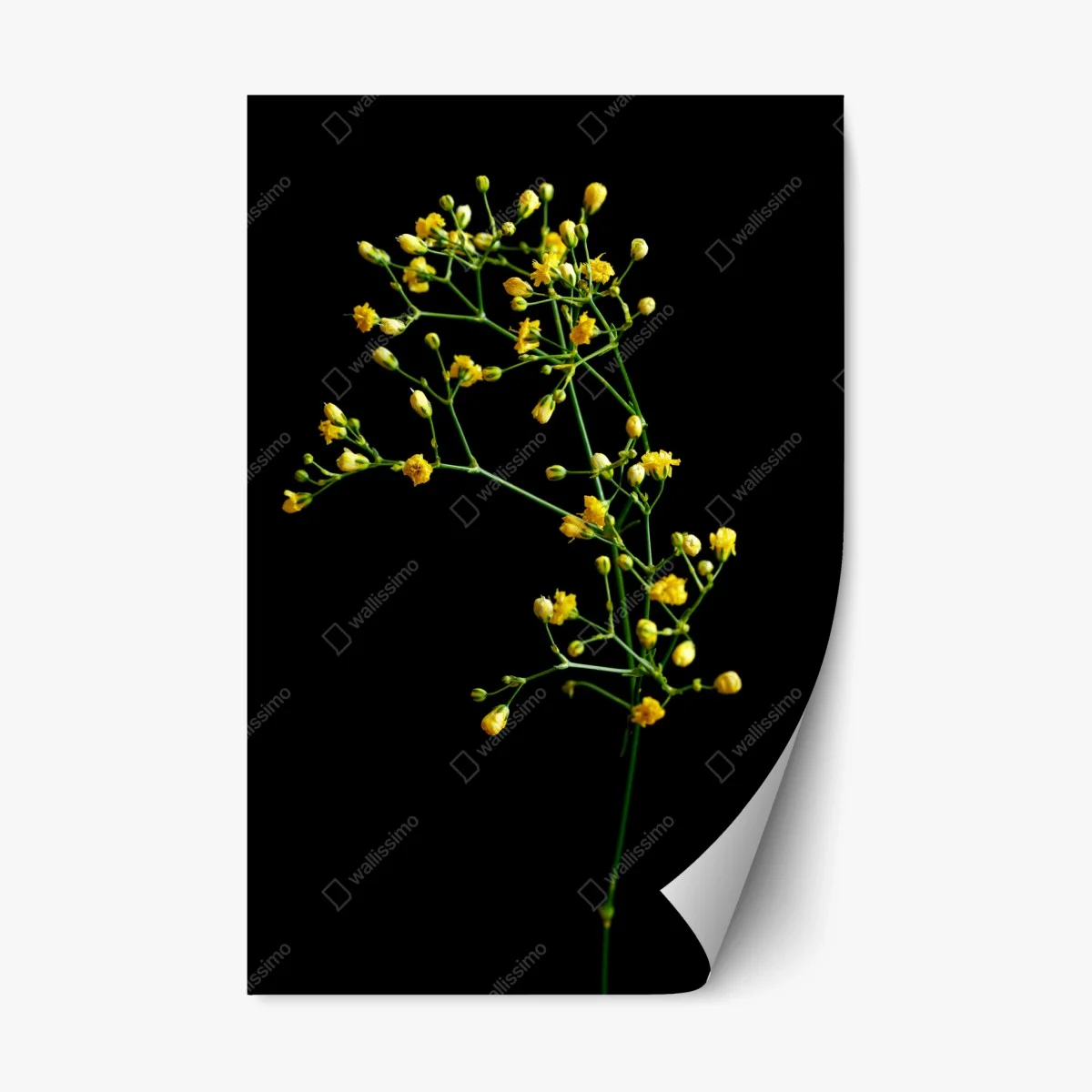 Repositionierbarer Aufkleber Zartes gelbes schleierkraut auf schwarzem hintergrund