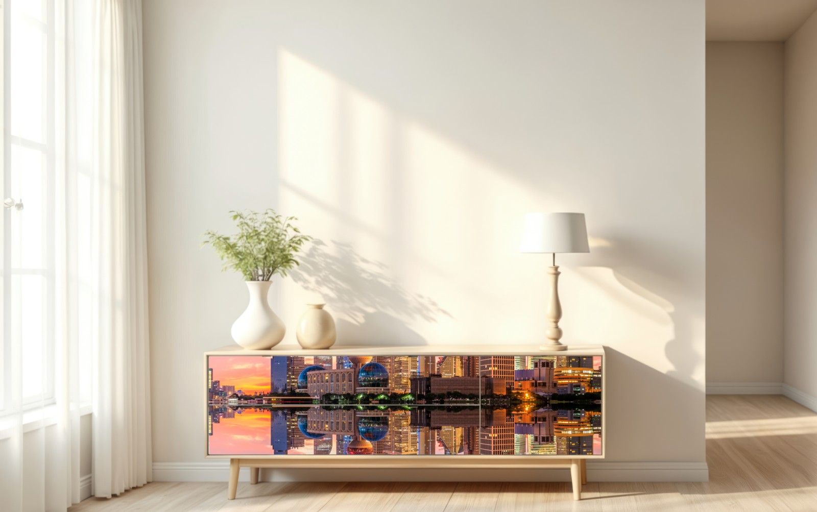 Repositionierbarer Aufkleber Shanghai skyline bei sonnenaufgang