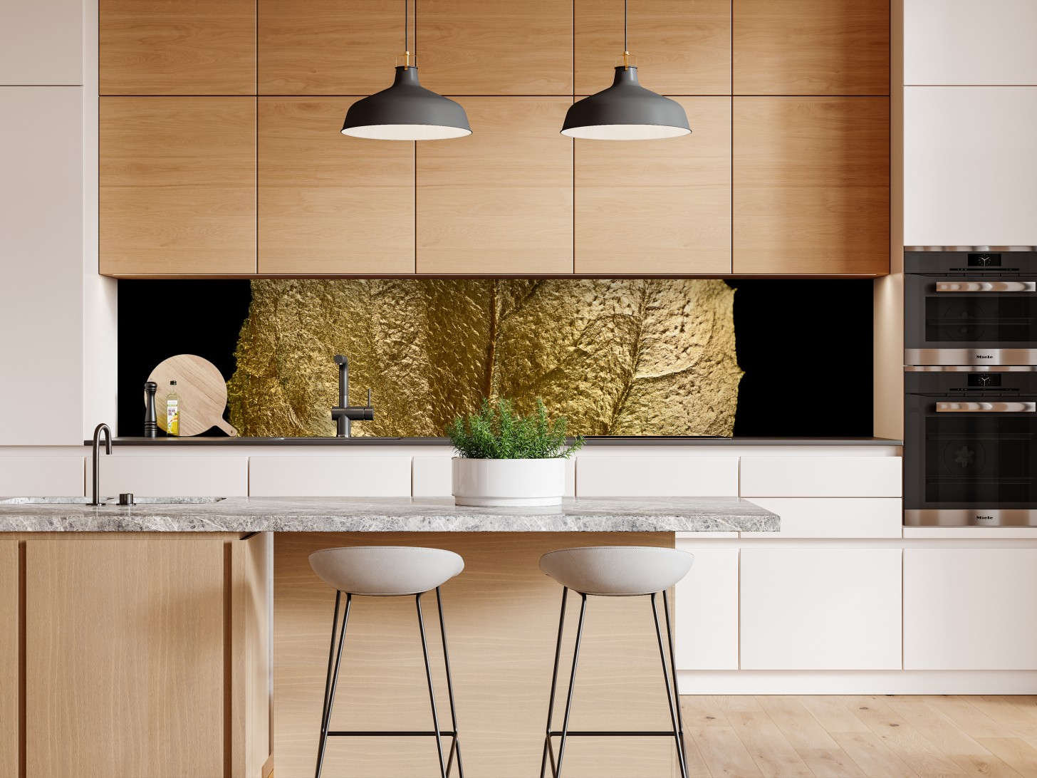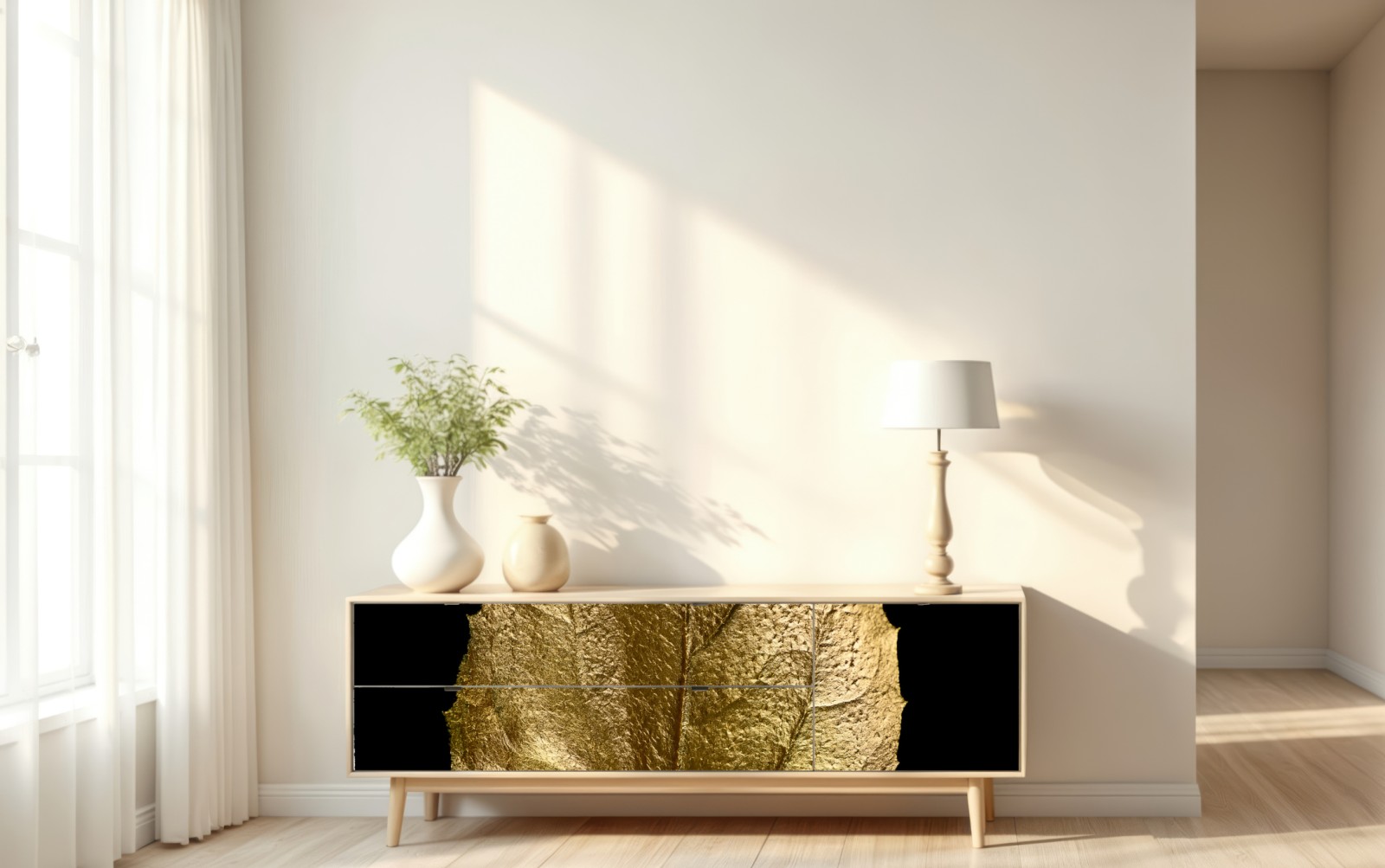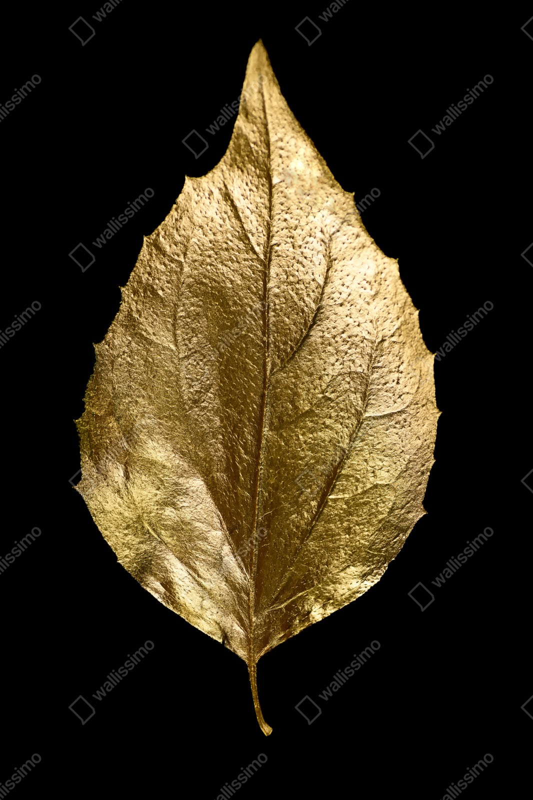 Repositionierbarer Aufkleber Goldenes blatt auf schwarzem hintergrund