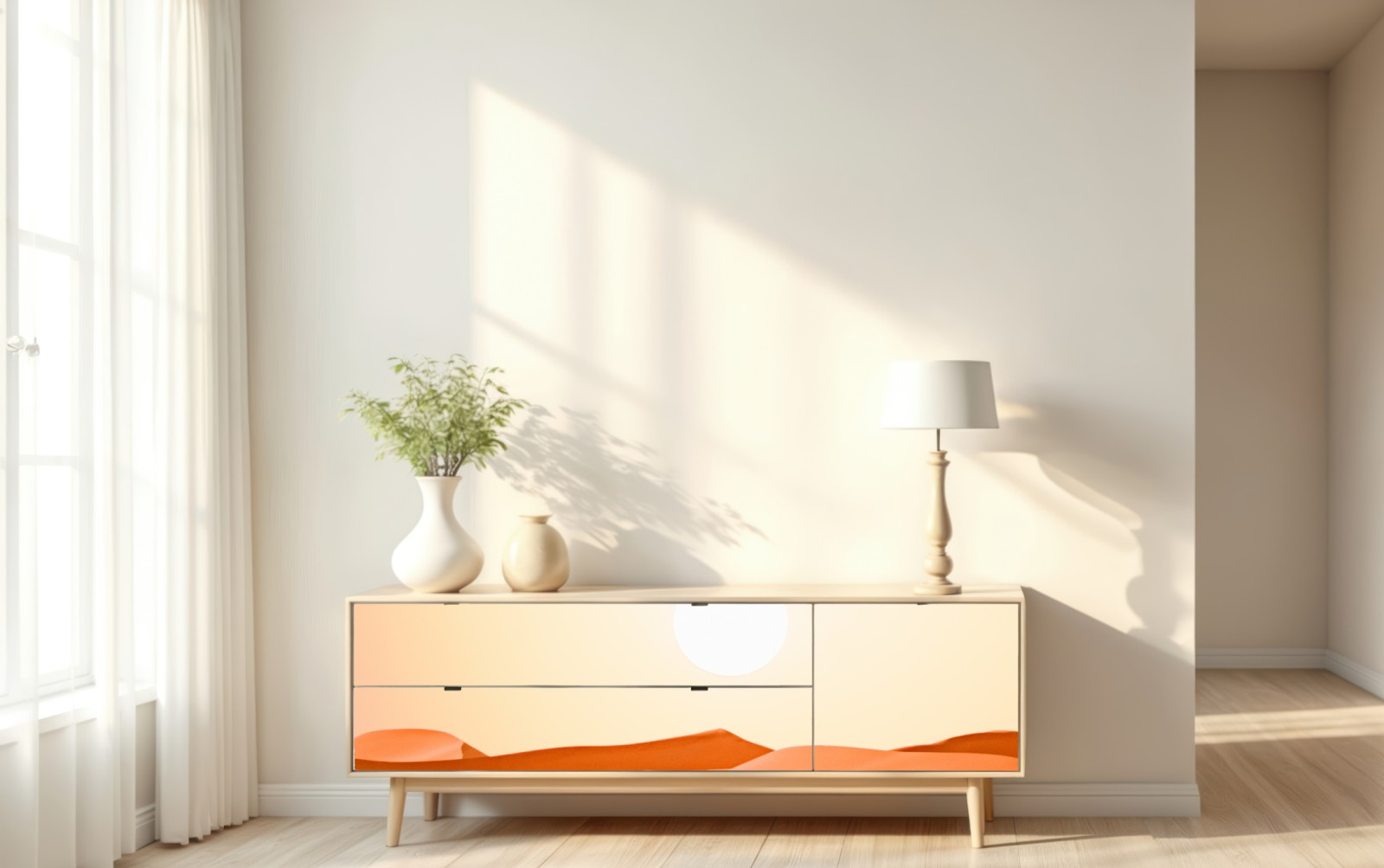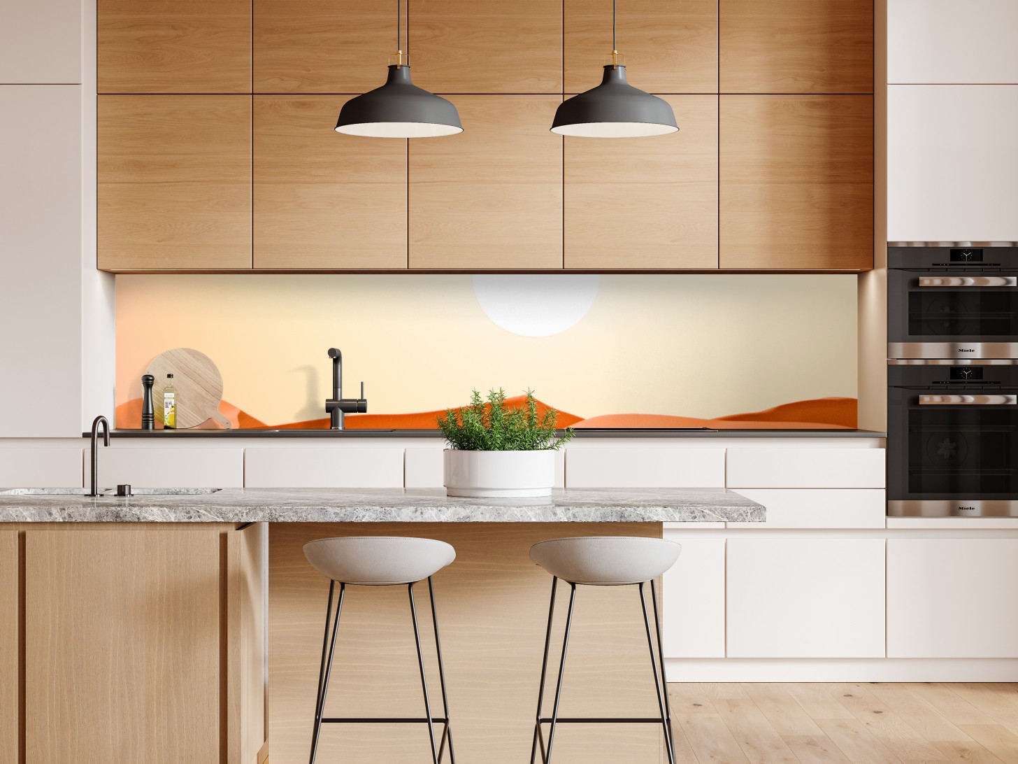 Repositionierbarer Aufkleber Karawane von kamelen in der wüste bei sonnenuntergang