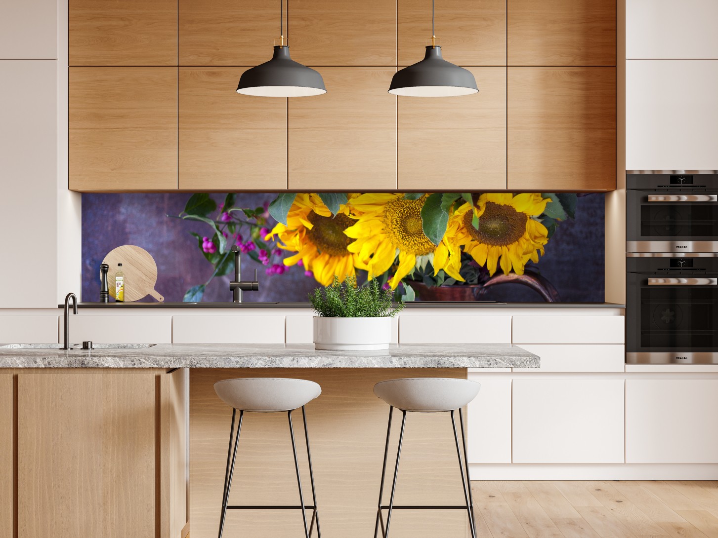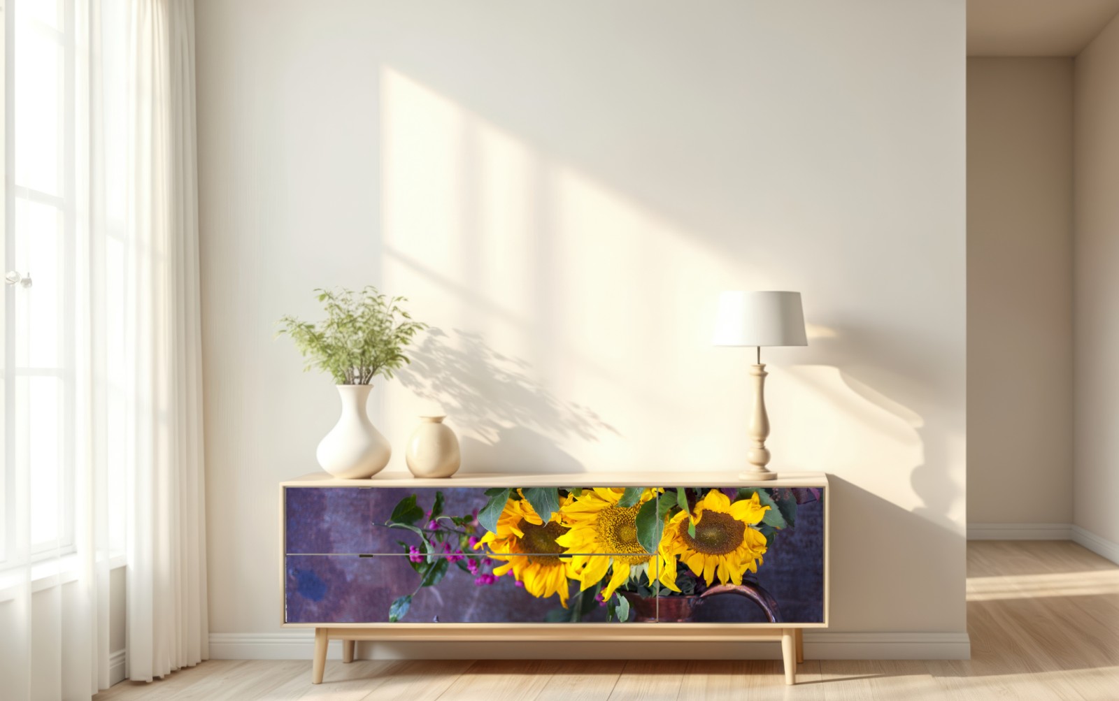 Repositionierbarer Aufkleber Sonnenblumen und birnen stilleben
