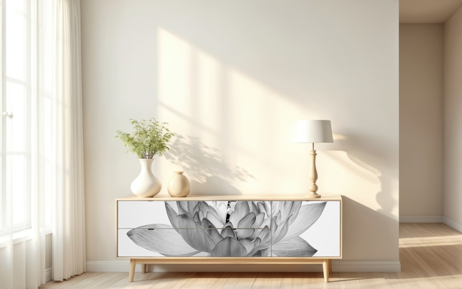 Repositionierbarer Aufkleber Ruhevoller lotus in graustufen