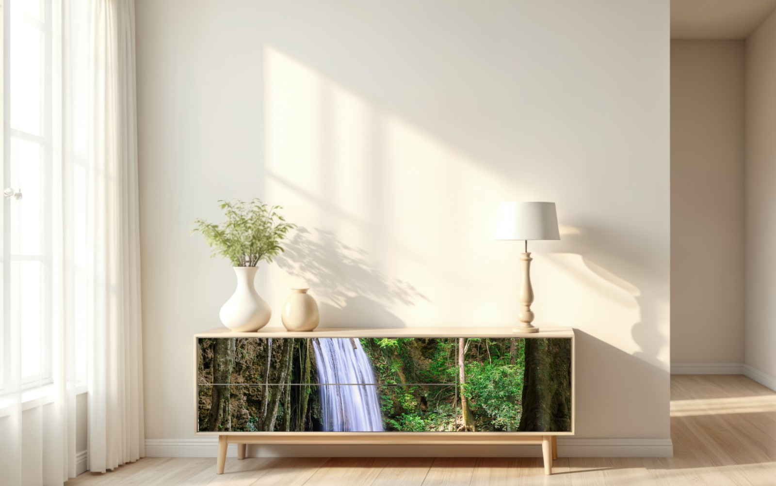 Repositionierbarer Aufkleber Ruhiger wasserfall im Erawan Nationalpark