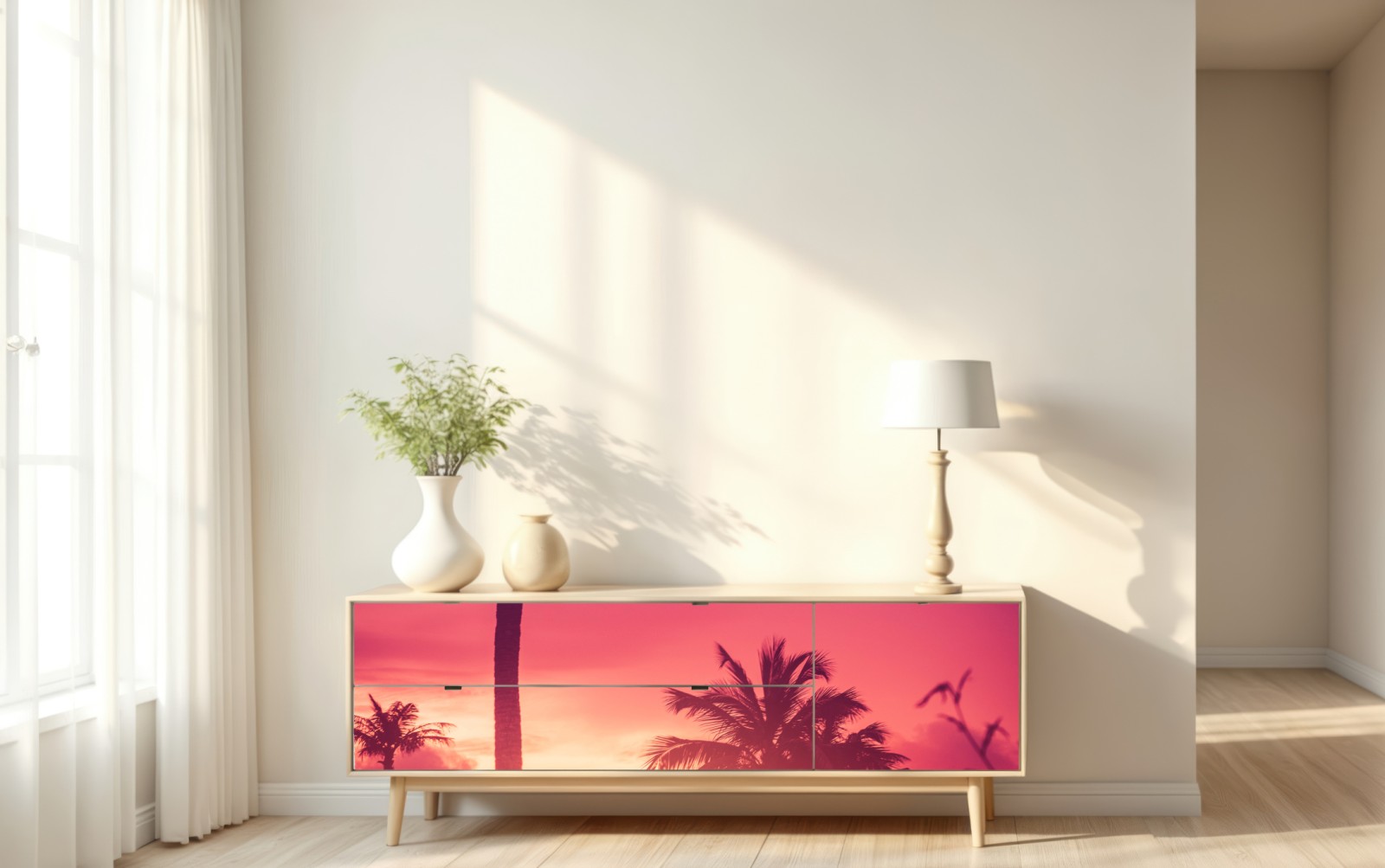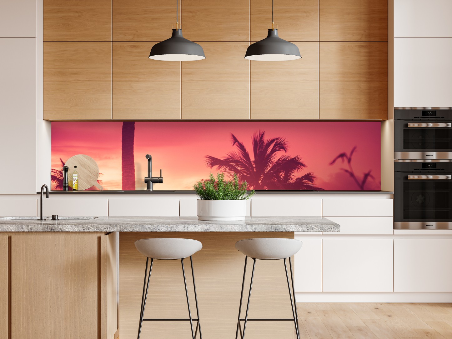 Repositionierbarer Aufkleber Tropischer sonnenuntergang mit palmen