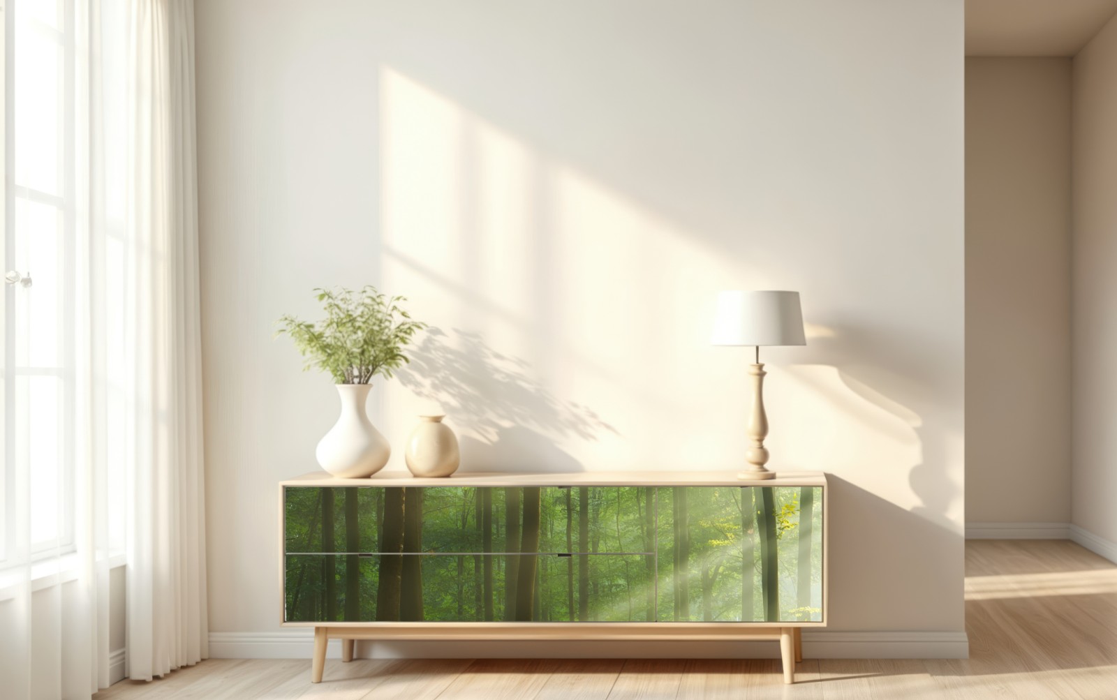 Repositionierbarer Aufkleber Sonniger morgenwald