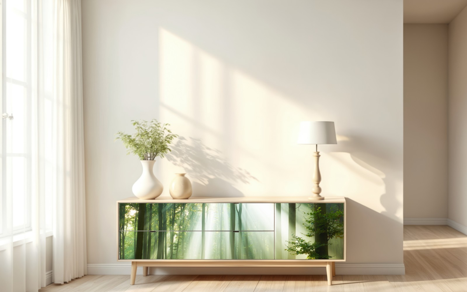 Repositionierbarer Aufkleber Morgendliches licht im wald