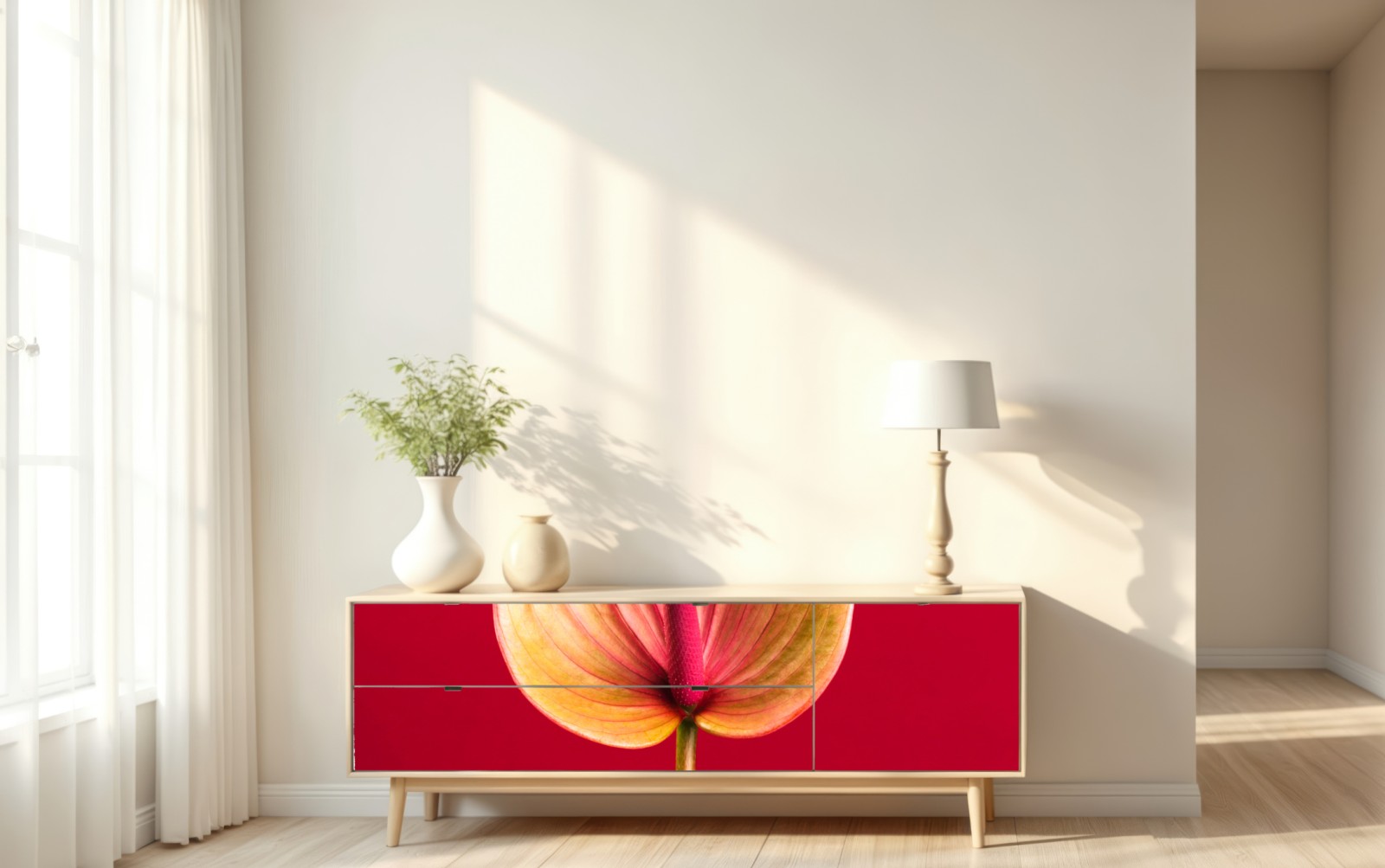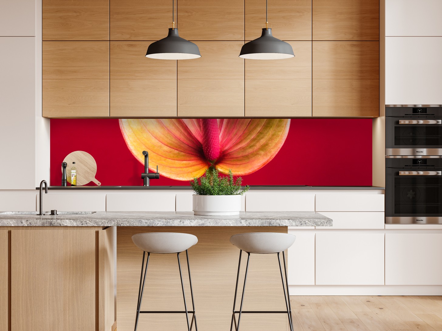 Repositionierbarer Aufkleber Elegantes anthurium vor rotem hintergrund