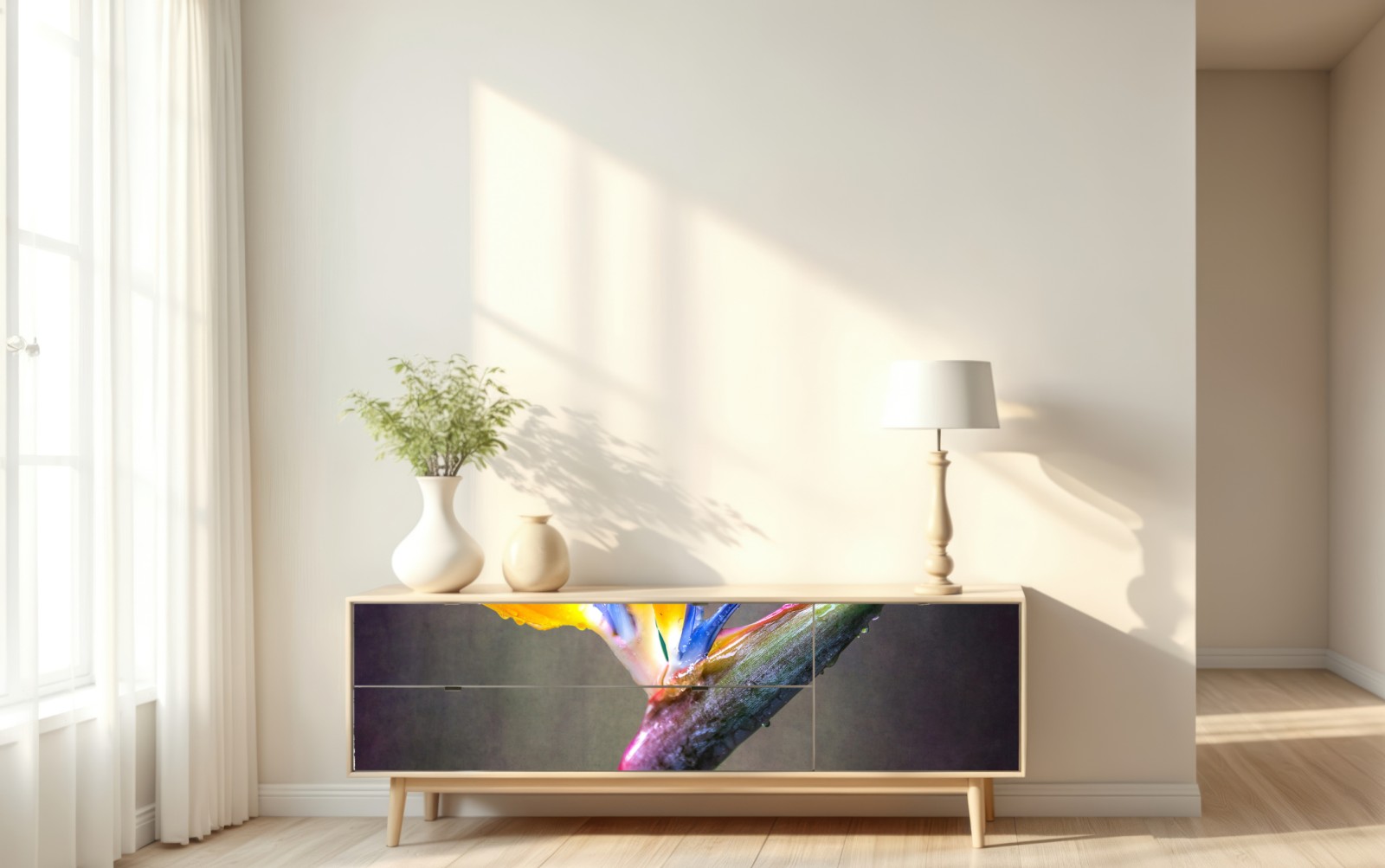 Repositionierbarer Aufkleber Strelitzie in leuchtenden farben