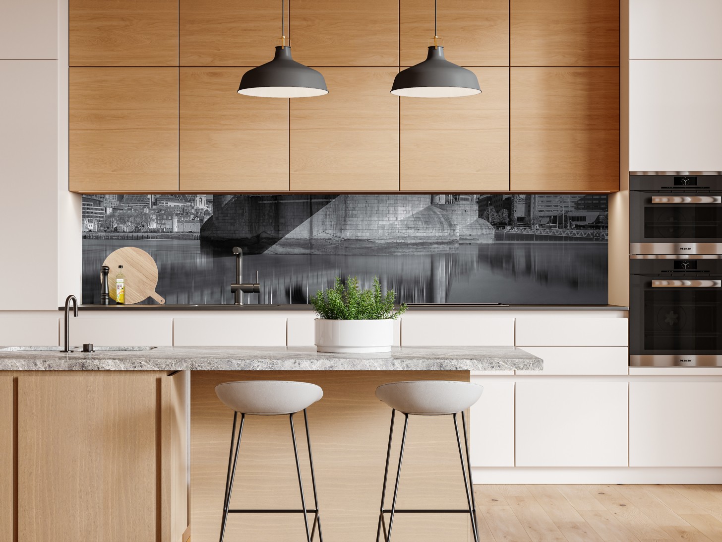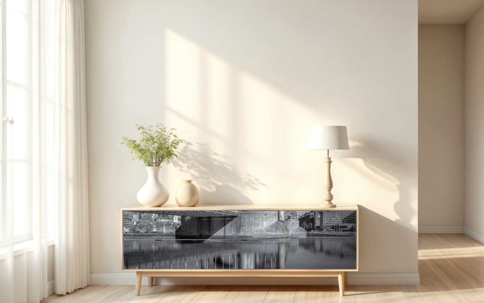 Repositionierbarer Aufkleber Tower Bridge reflektiert in schwarzweiß