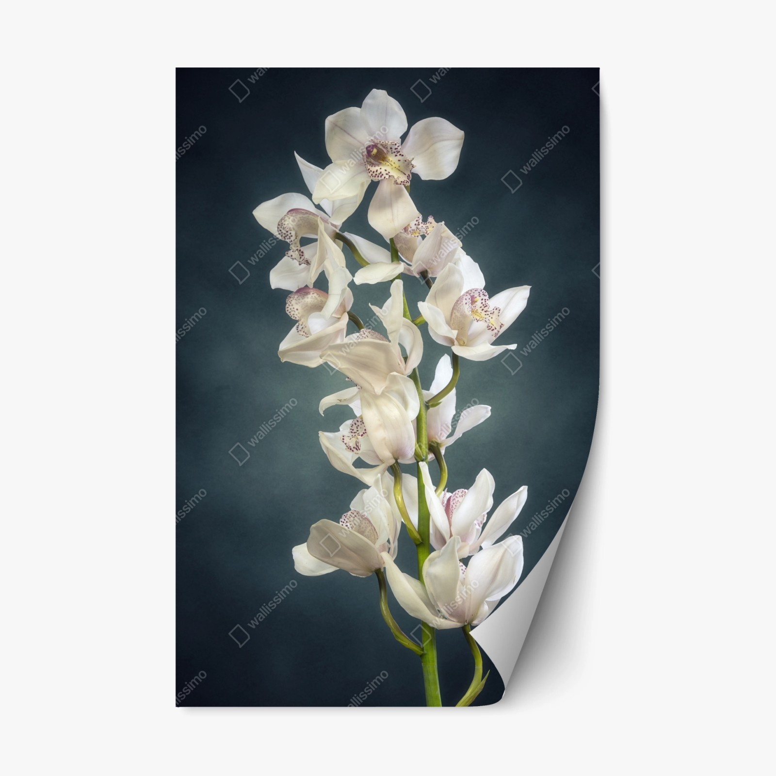 Repositionierbarer Aufkleber Zarte weiße orchideen vor gedämpftem hintergrund
