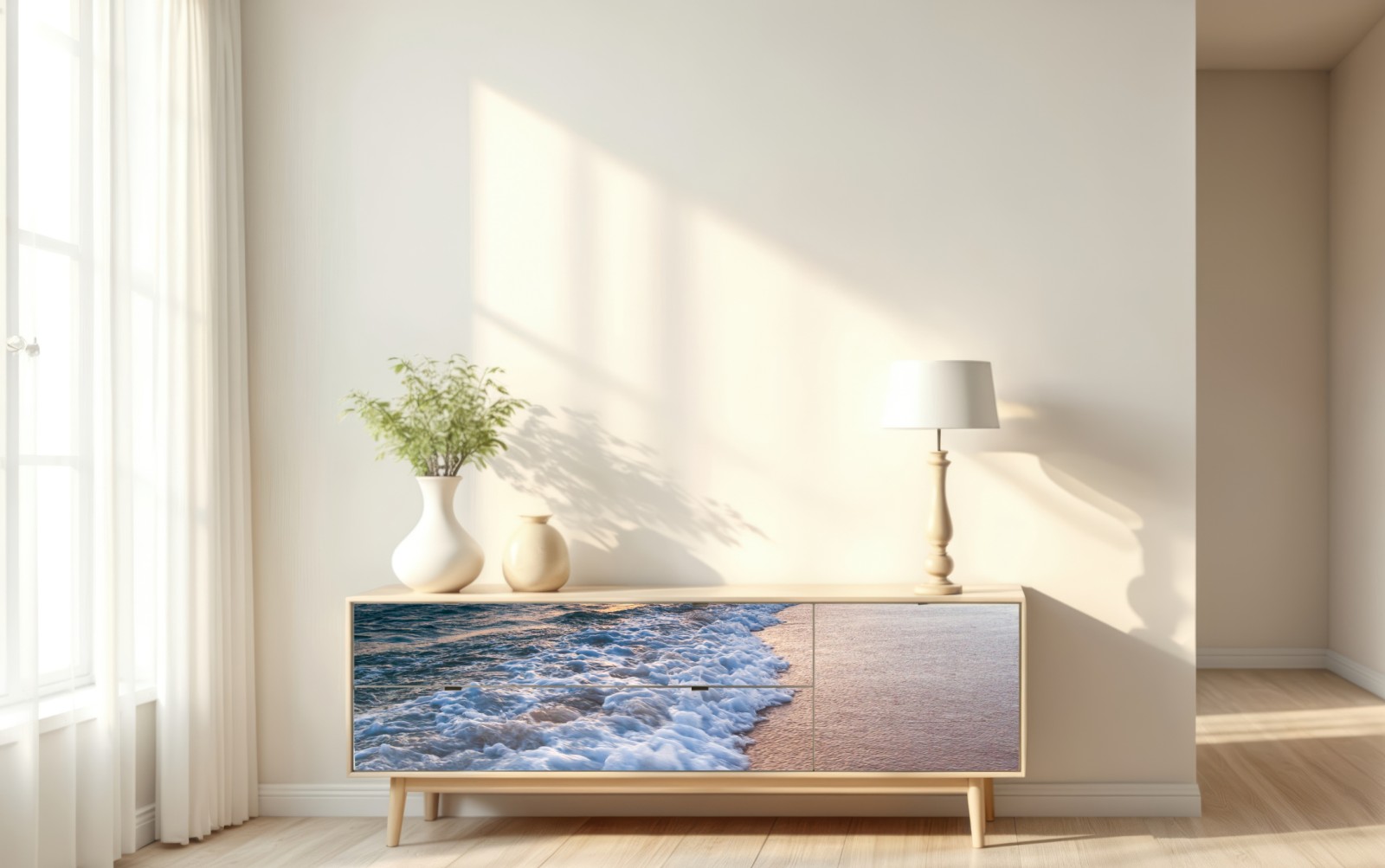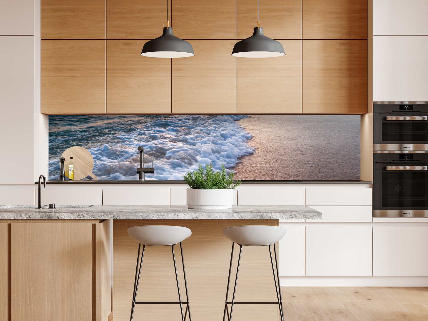 Repositionierbarer Aufkleber Ruhiger sonnenaufgang am meeresufer