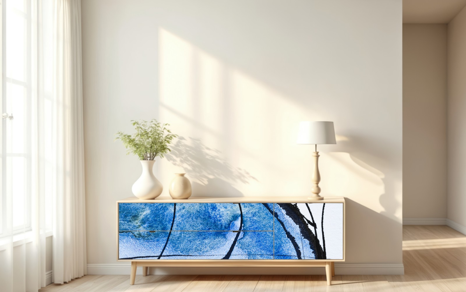 Repositionierbarer Aufkleber Blaue abstrakte tusche- und aquarellkomposition