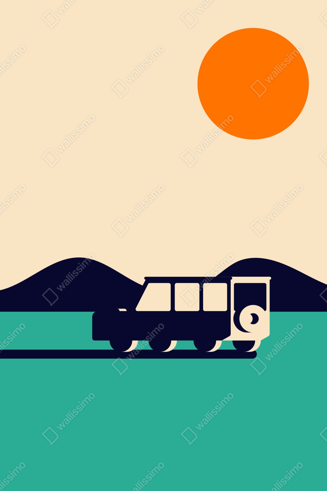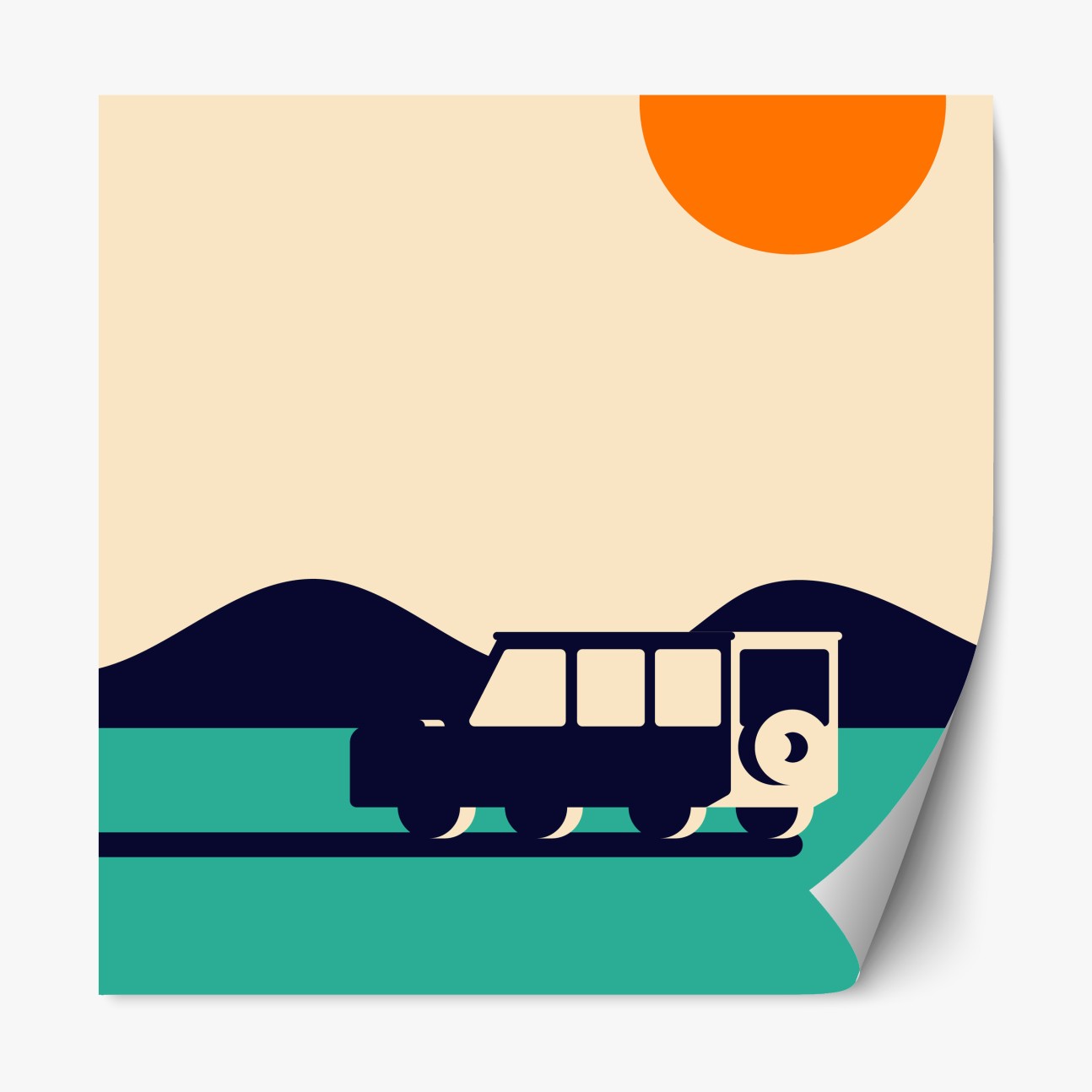 Repositionierbarer Aufkleber Geometrische berglandschaft mit wohnmobil