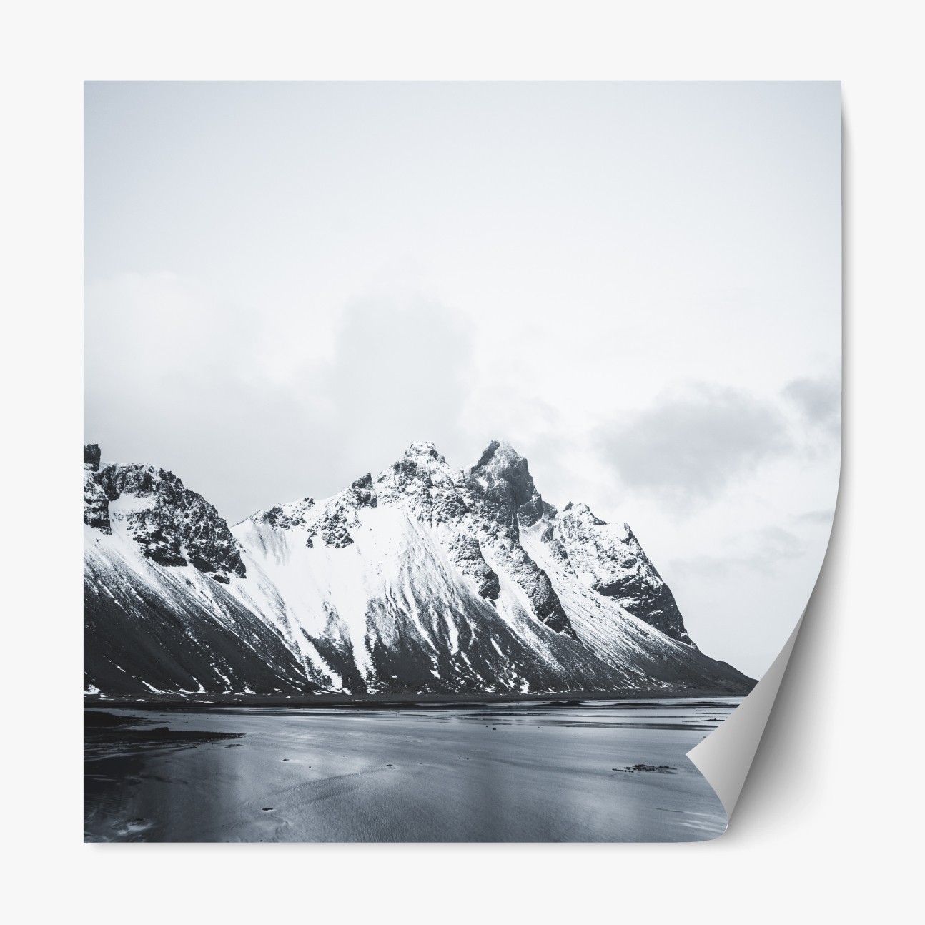 Repositionierbarer Aufkleber Ruhige schneebedeckte berglandschaft am meer