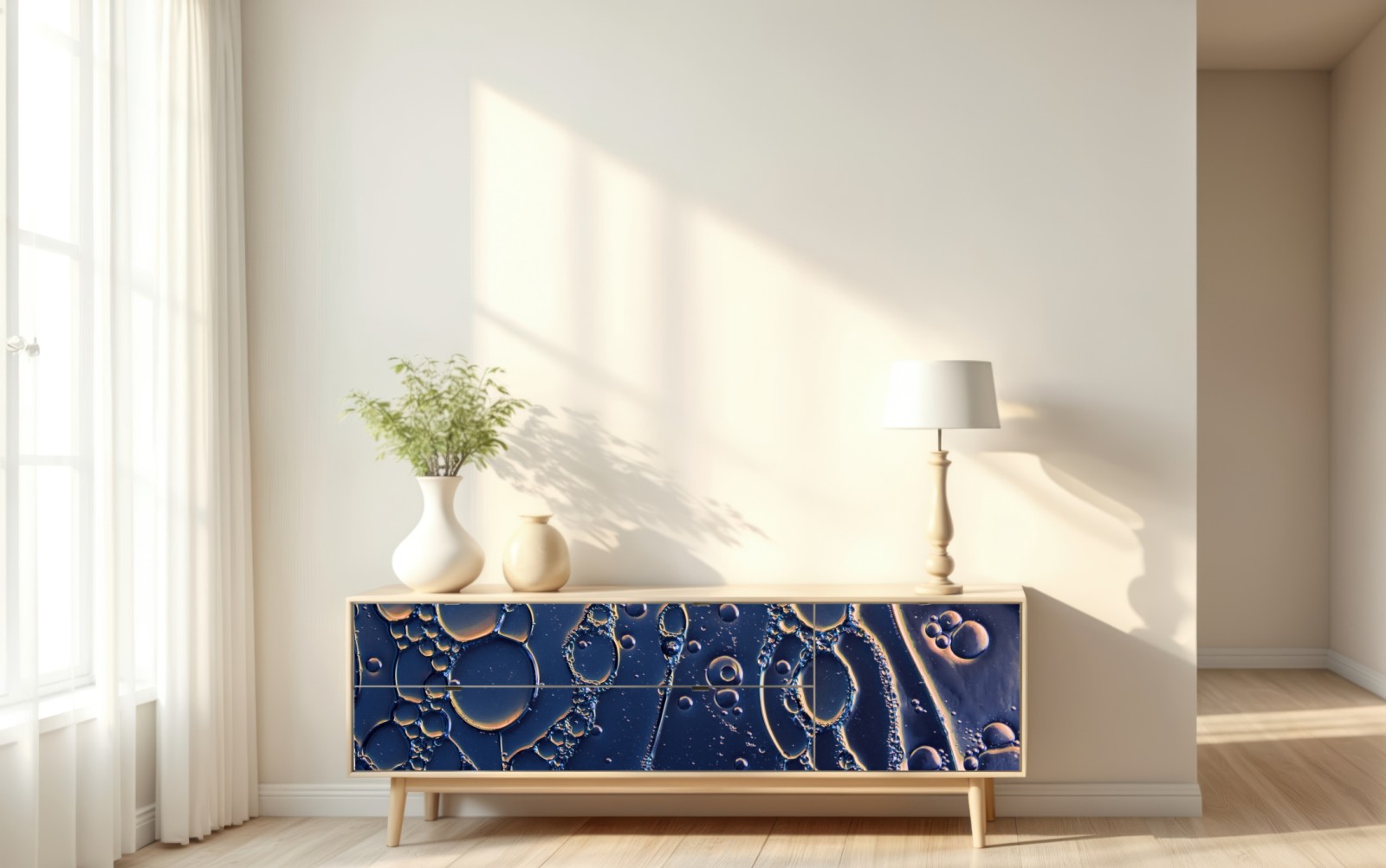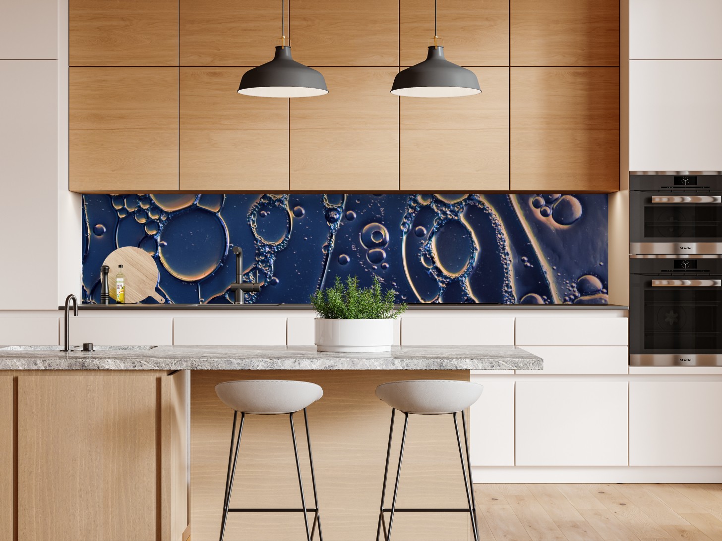 Repositionierbarer Aufkleber Blaue und goldene abstrakte blasen