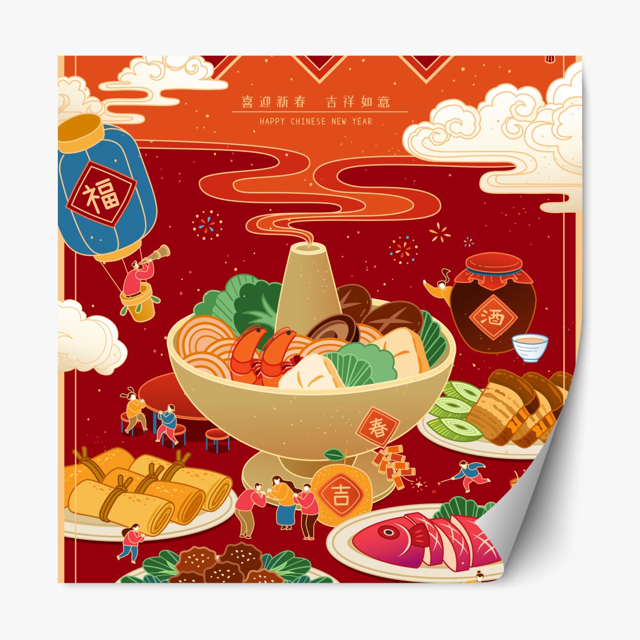 Repositionierbarer Aufkleber Illustration des gemeinsamen essens zum Chinesischen Neujahr