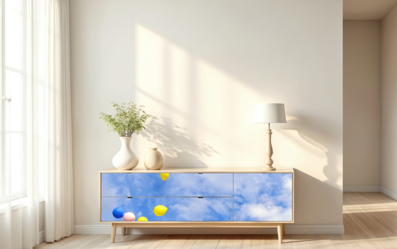Repositionierbarer Aufkleber Bunte luftballons steigen in den himmel