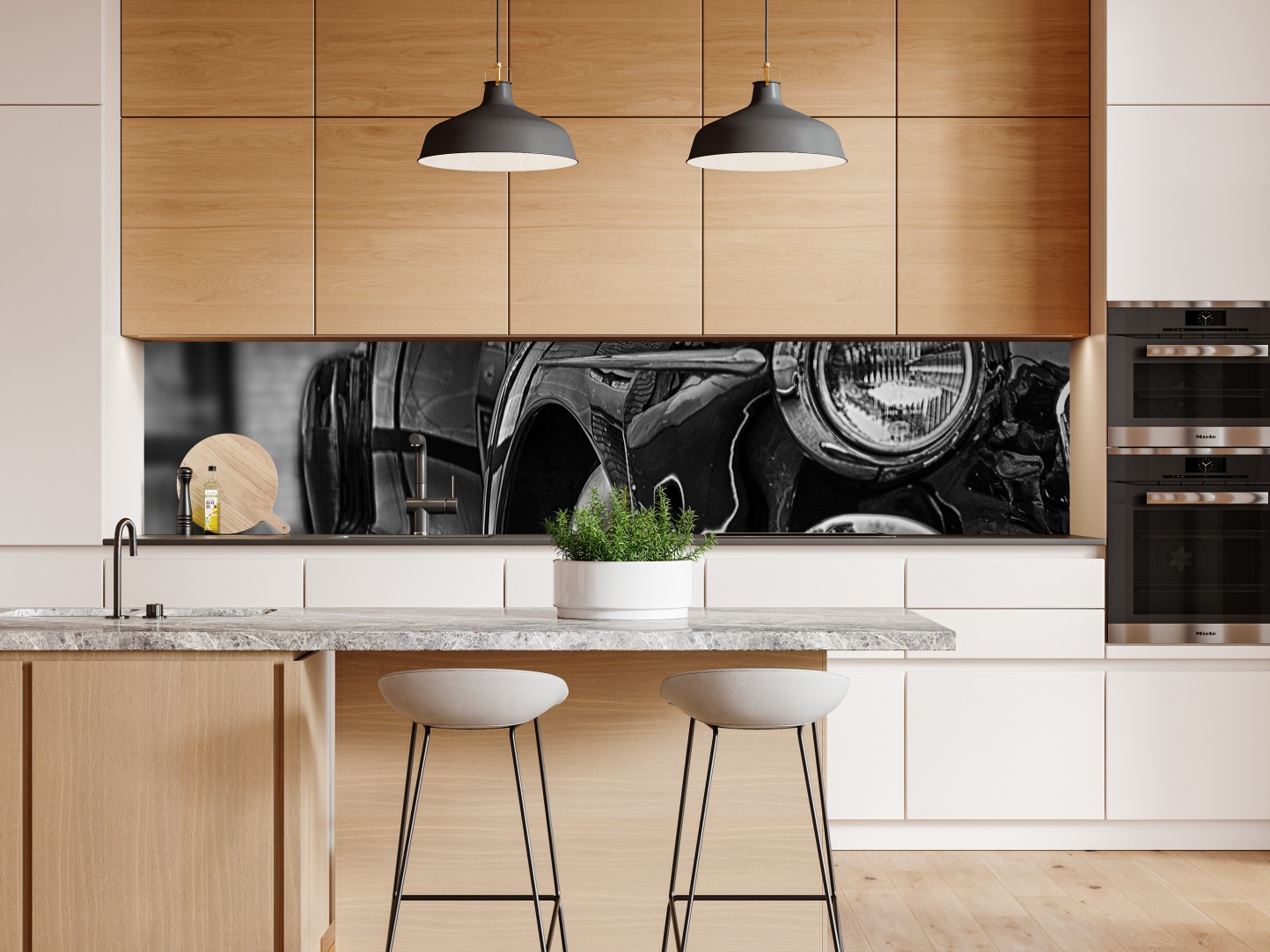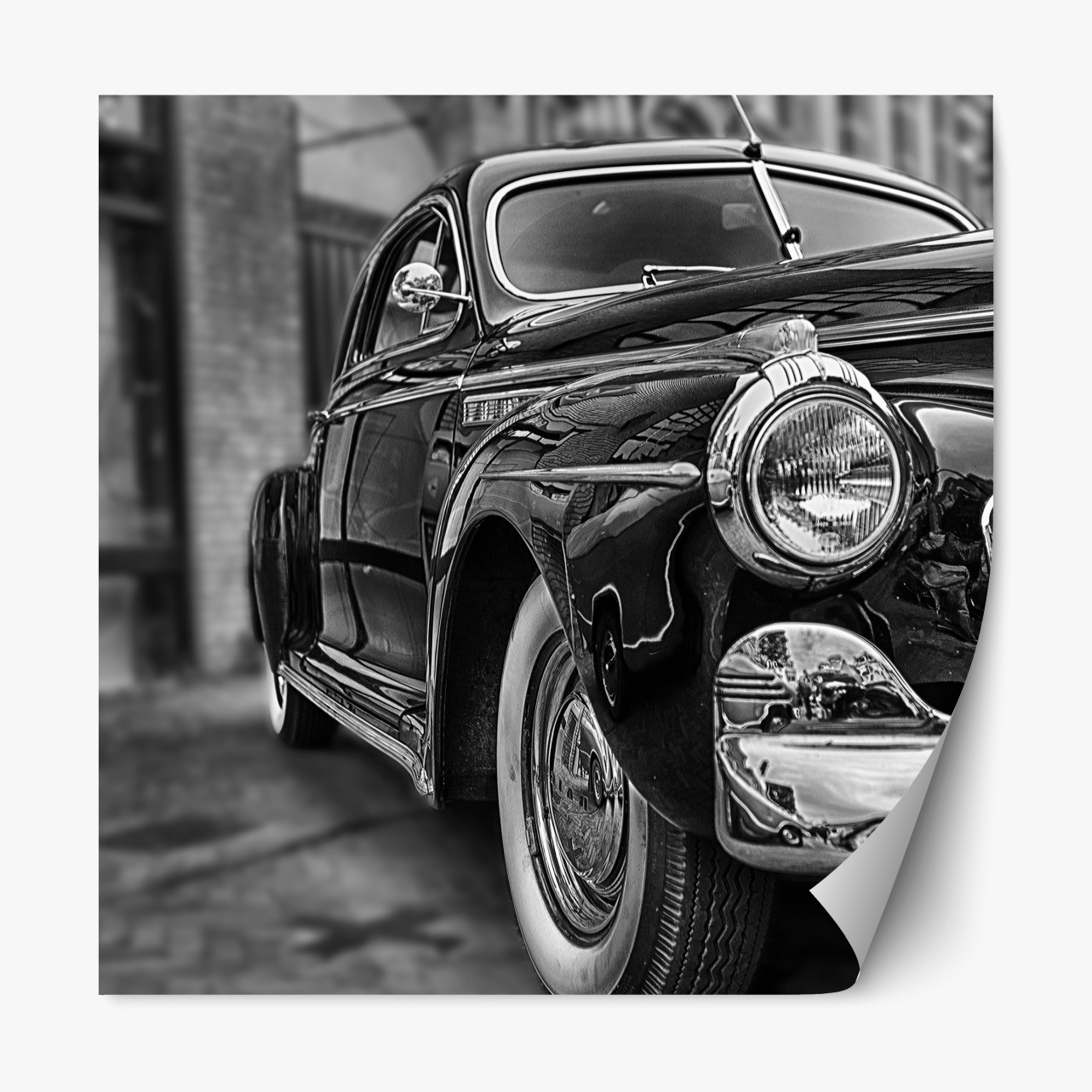 Repositionierbarer Aufkleber Vintage klassisches auto auf kopfsteinpflaster