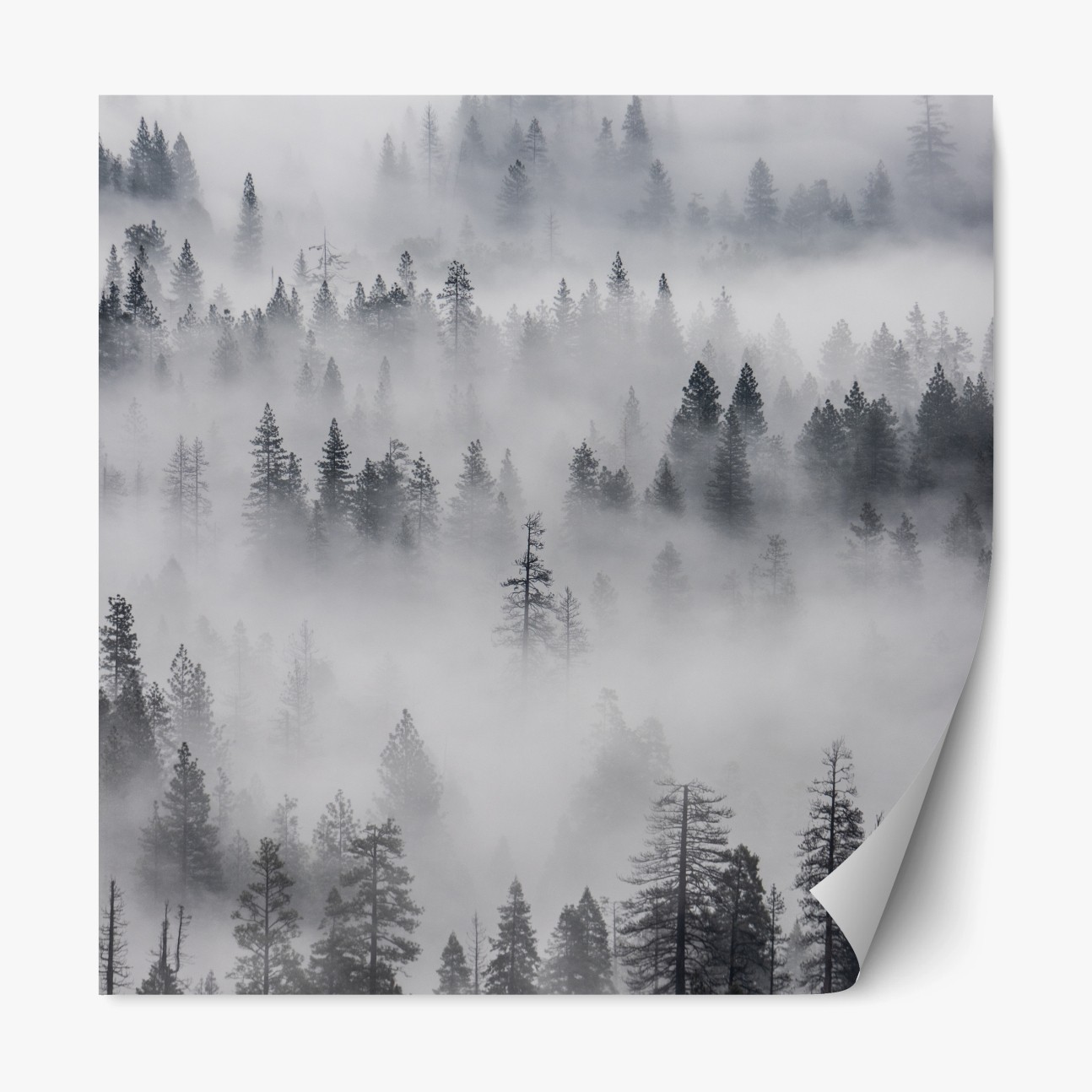 Repositionierbarer Aufkleber Nebeliger kiefernwald