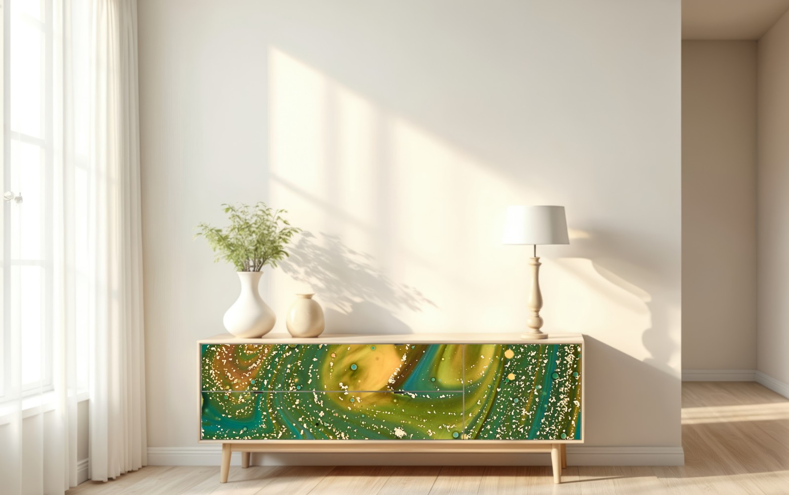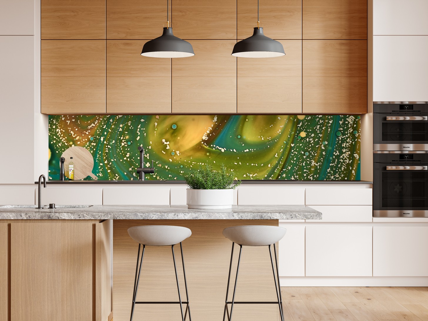 Repositionierbarer Aufkleber Grün-goldene flüssige marmorierte kunst