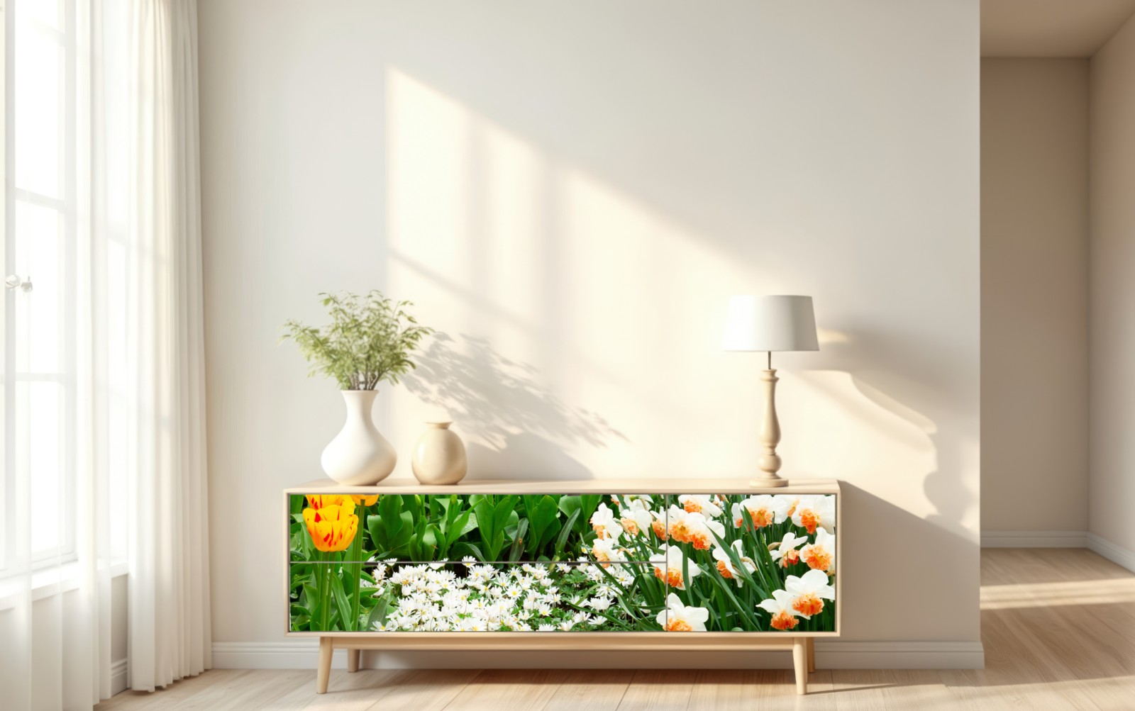 Repositionierbarer Aufkleber Lebendiger frühlingsblumengarten