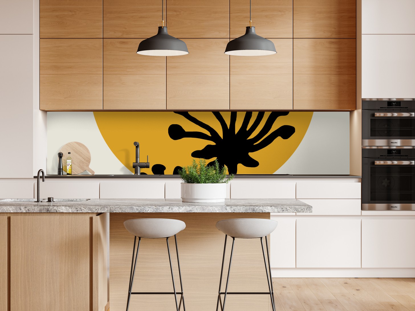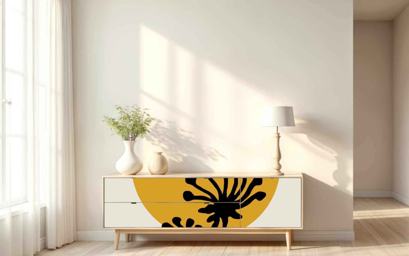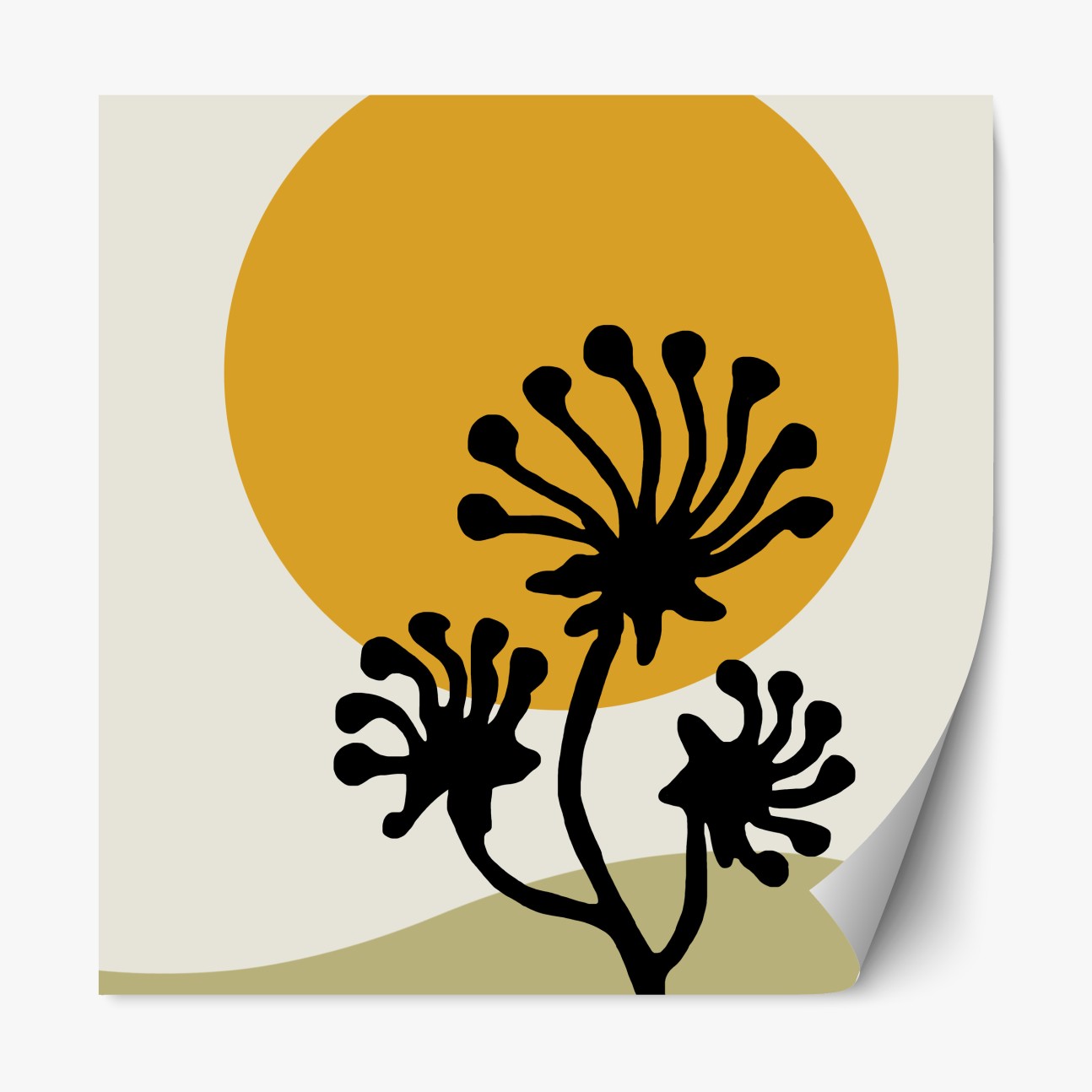 Repositionierbarer Aufkleber Minimalistische botanische silhouette mit sonne