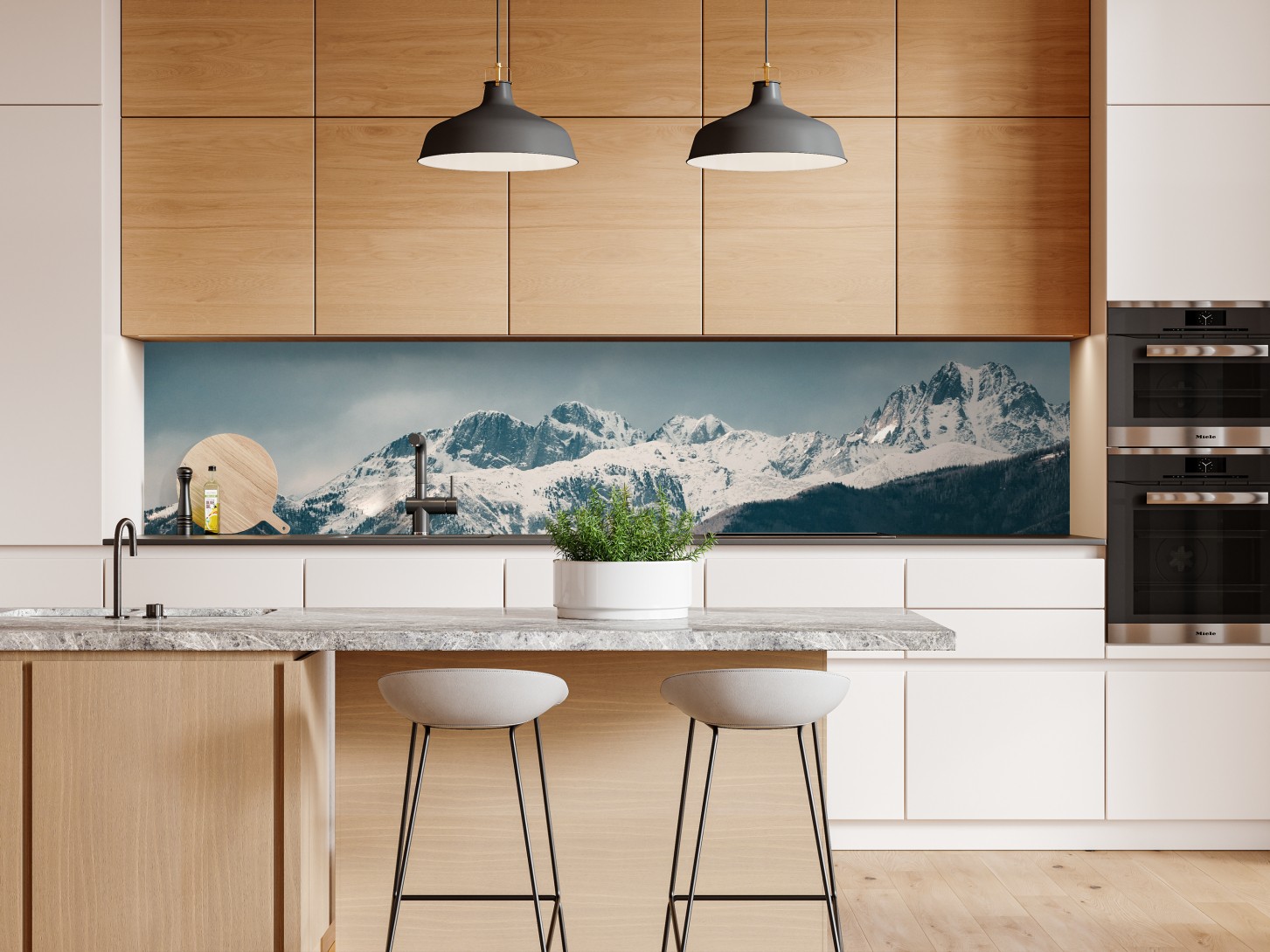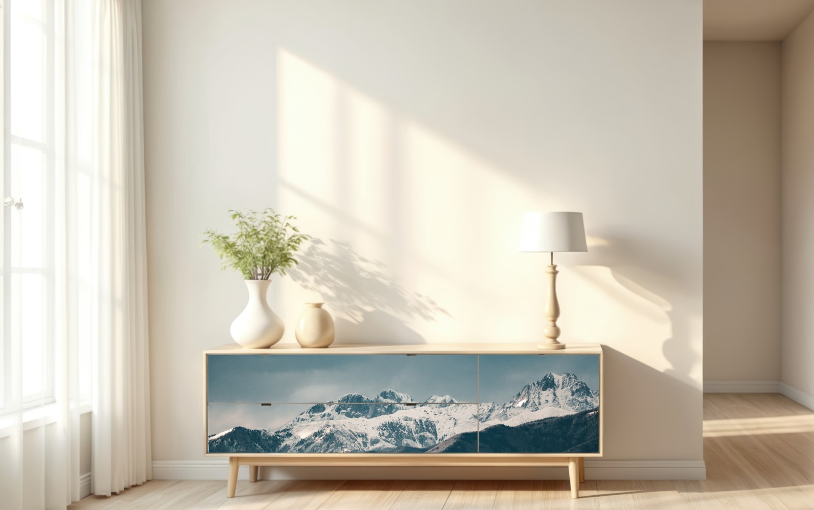 Repositionierbarer Aufkleber Wüstendünen vor schneebedeckten gipfeln