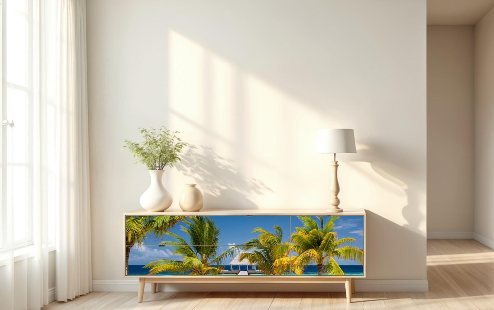 Repositionierbarer Aufkleber Tropischer steg über türkisfarbenes meer
